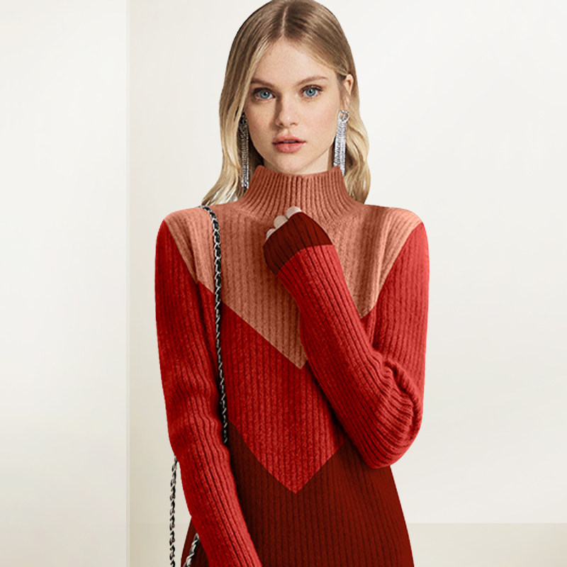 气质圆领针织连衣裙女2026年冬新款毛衫加厚中长款宽松显瘦毛衣裙
