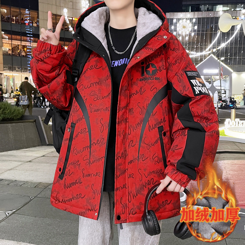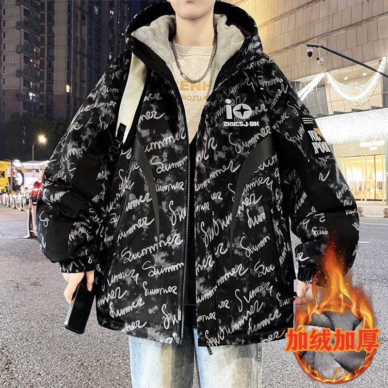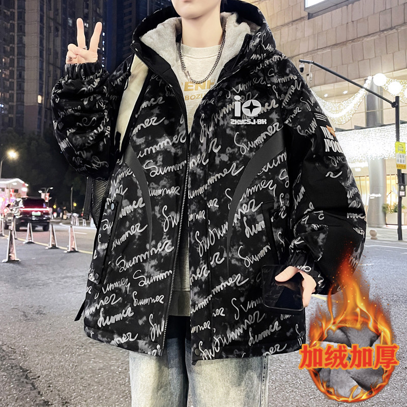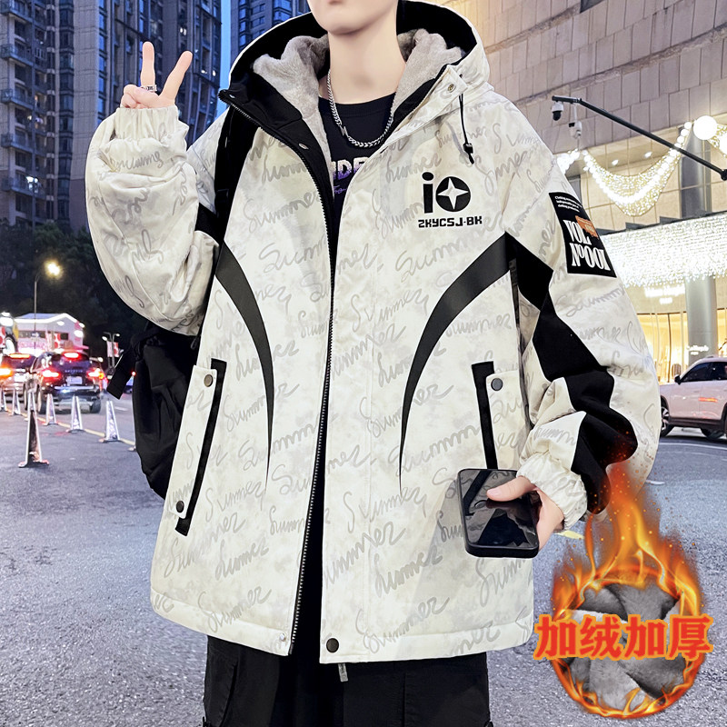 秋冬款棉服外套男孩初中高中学生加绒加厚青少年帅气大童冬装夹克