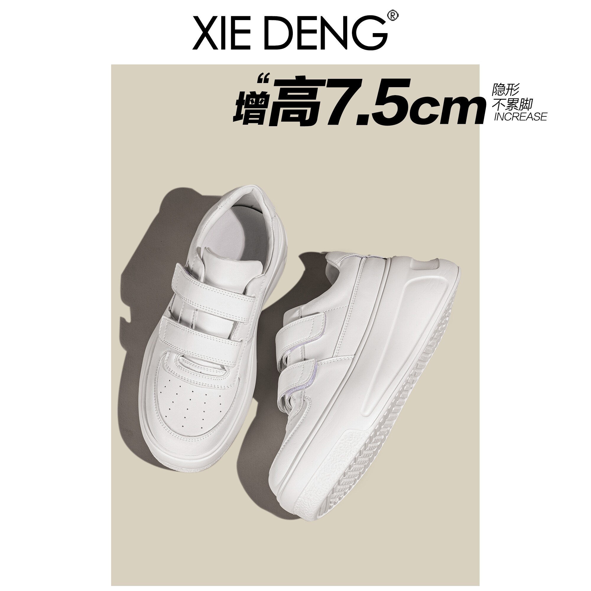 「鞋登」魔术贴小白鞋女2026春新款厚底增高小个子真皮透气运动鞋