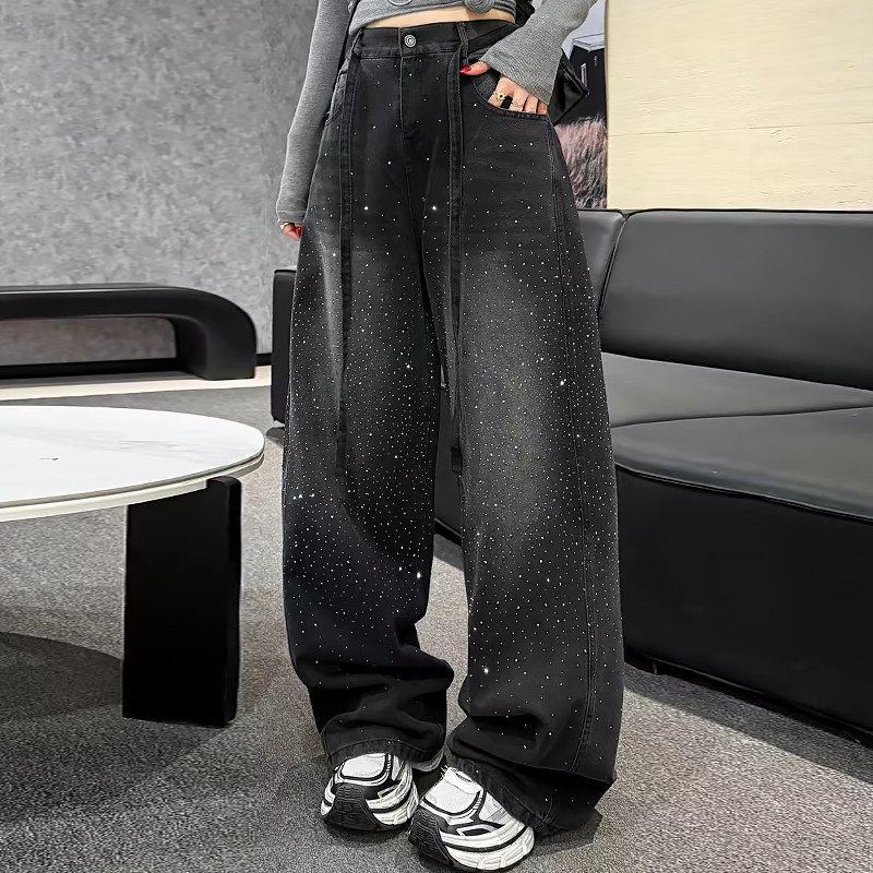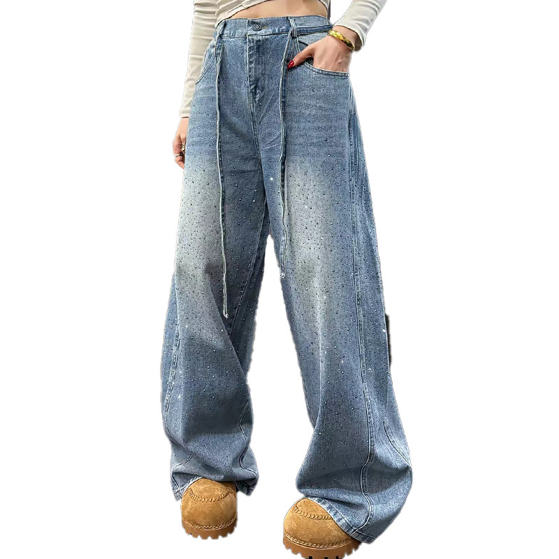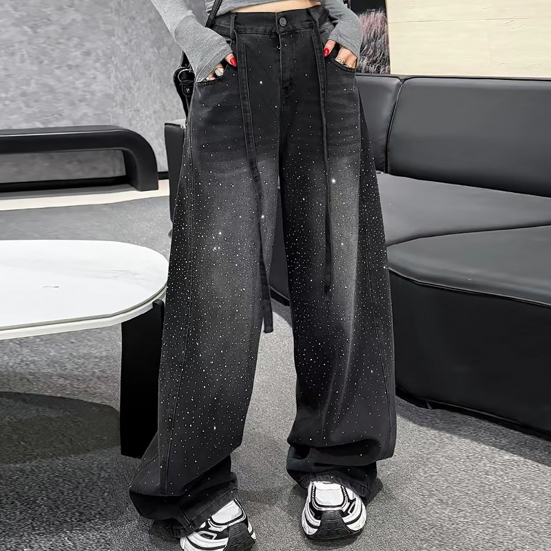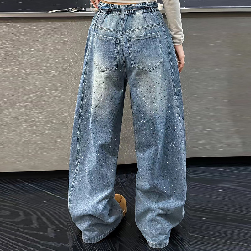 韩版前后烫钻牛仔裤子休闲女裤胖mm2026早春新款宽松显瘦大码女装