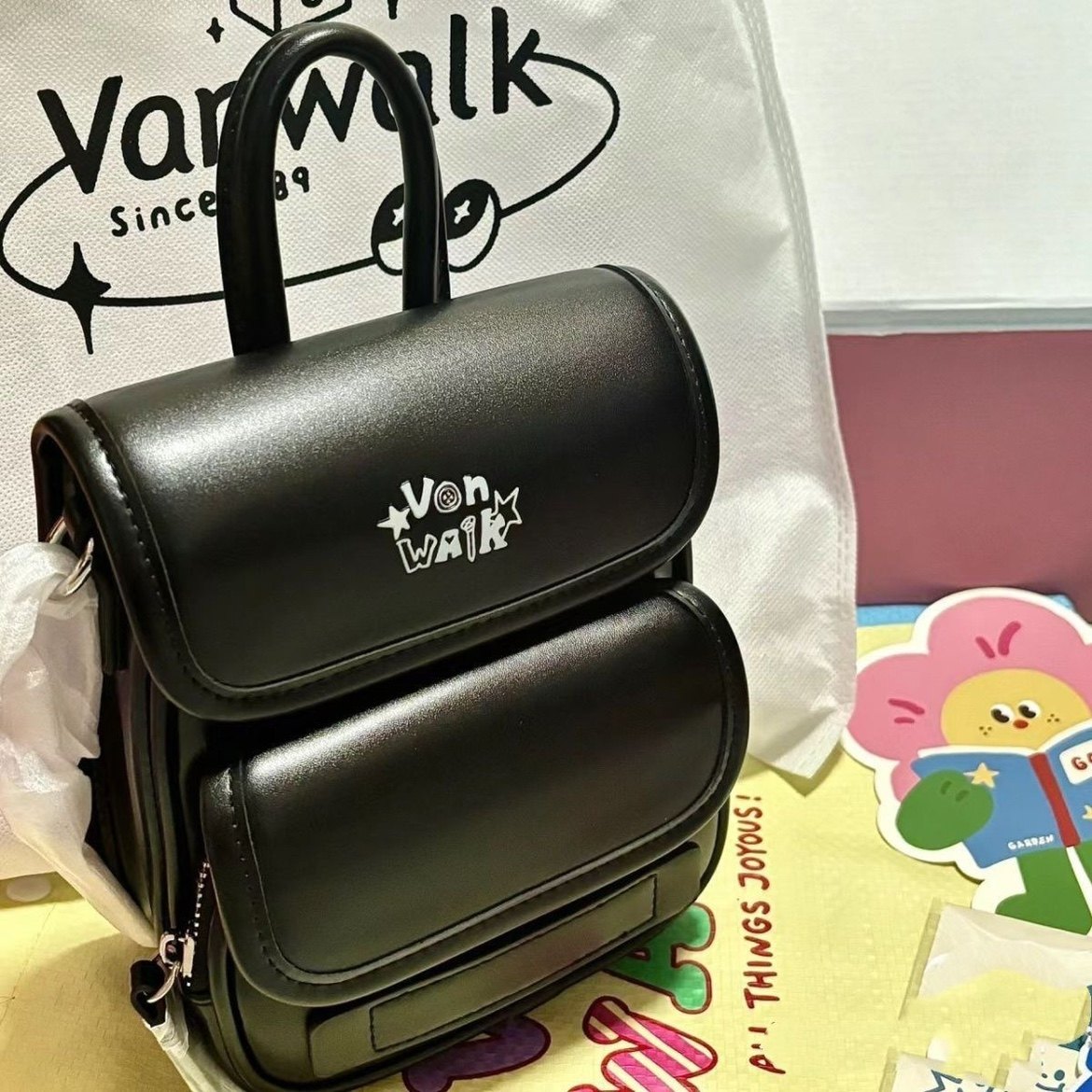 原创涂鸦小众设计感皮质双肩包女款斜挎包出游小背包