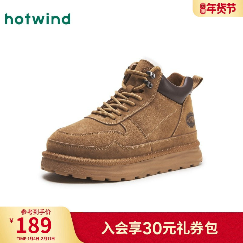 热风男鞋冬季新款雪地靴男士休闲短靴马丁工装加绒增高保暖棉鞋子