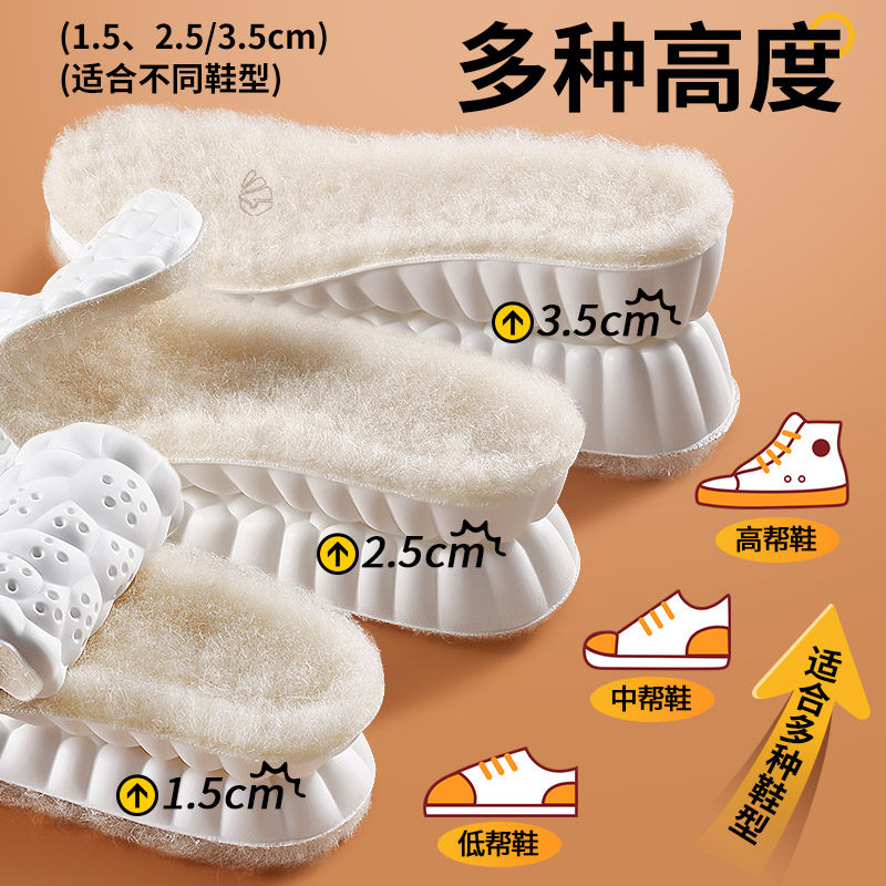 311线报网描述:羊毛增高垫女士不累脚隐形冬季保暖加绒加厚