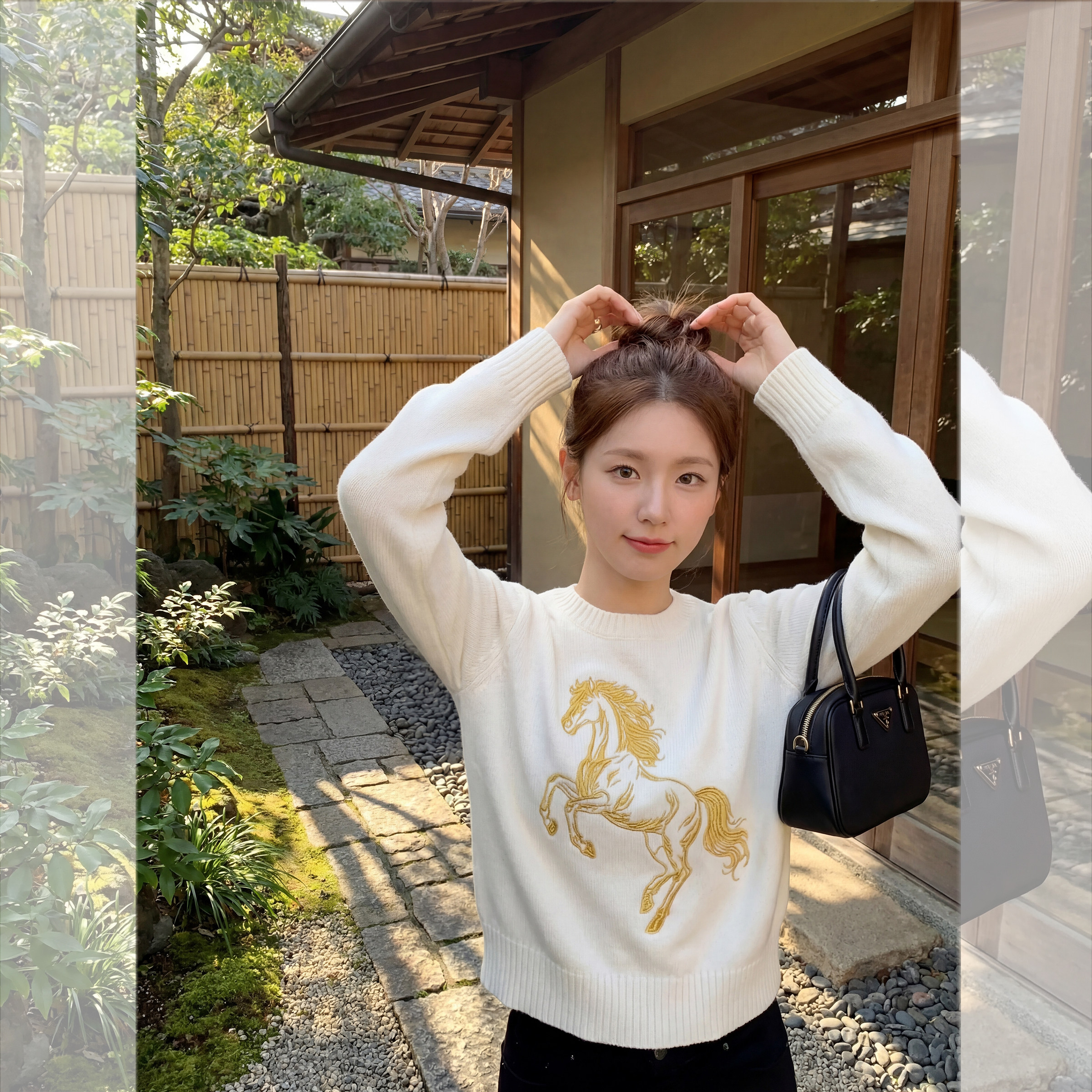 钟菲菲毛衣女款2026新款毛衣高级感刺绣针织衫内搭过年红马年羊毛