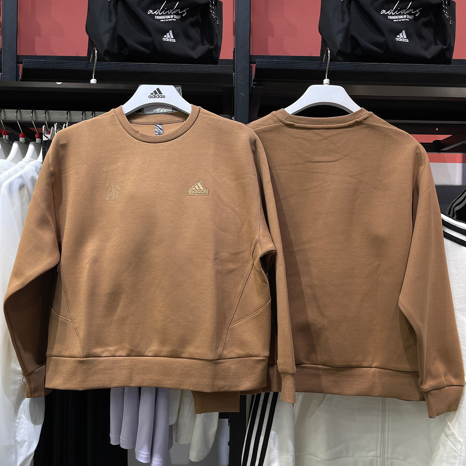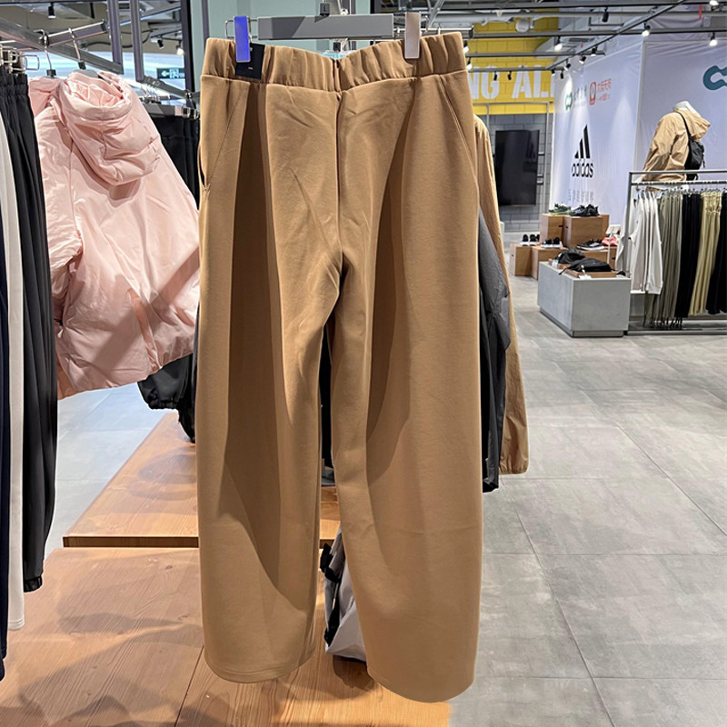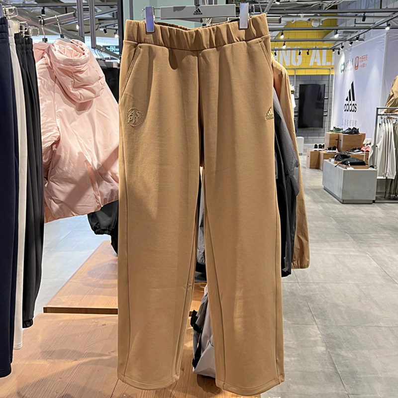 阿迪达斯套装女秋季新款棕色卫衣宽松直筒阔腿裤美式运动两件套