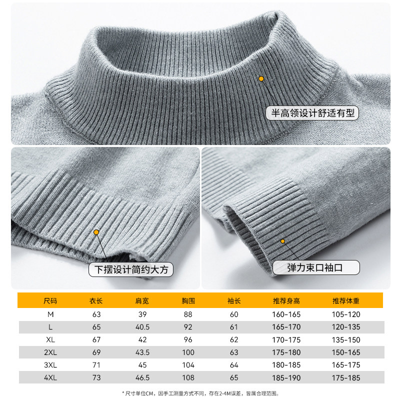 Rampo/乱步半高领毛衣男加厚保暖纯色宽松2025冬季针织打底衫男款