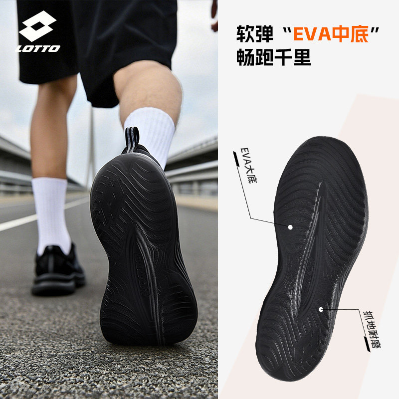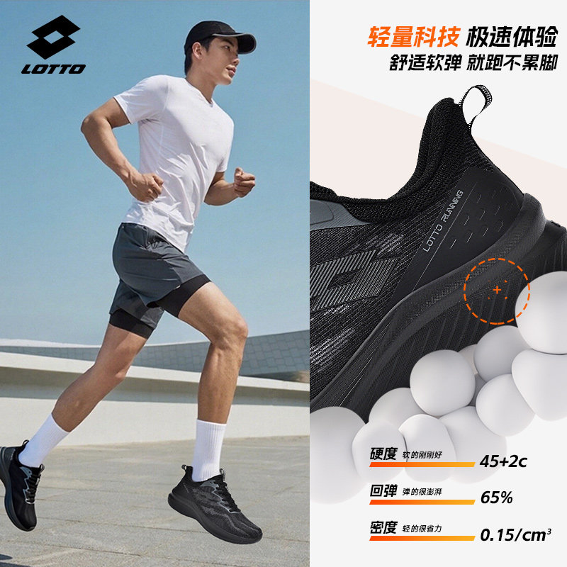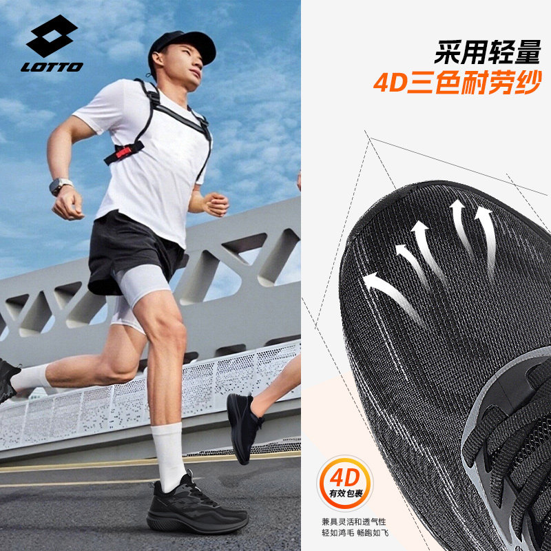 LOTTO乐途男黑色网面跑步鞋2026春秋季新款超轻减震运动跑鞋