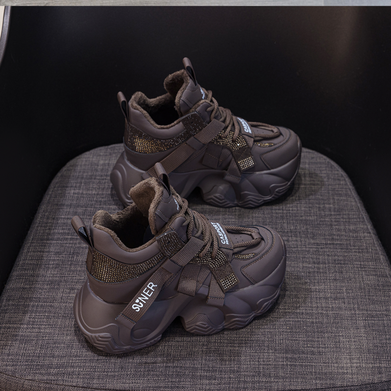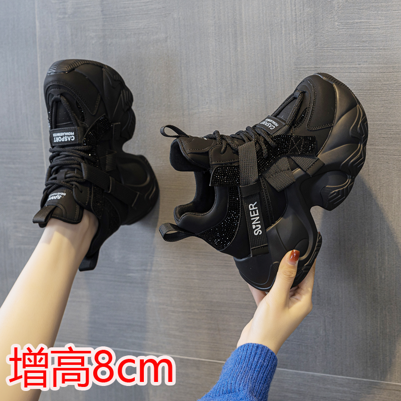 老爹鞋女款2025新款小个子厚底8cm内增高高帮运动休闲鞋加绒秋冬