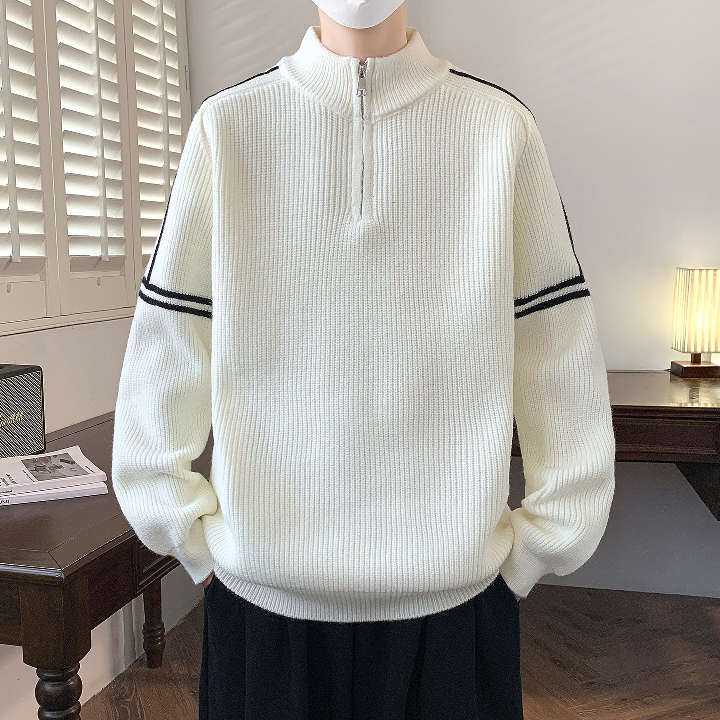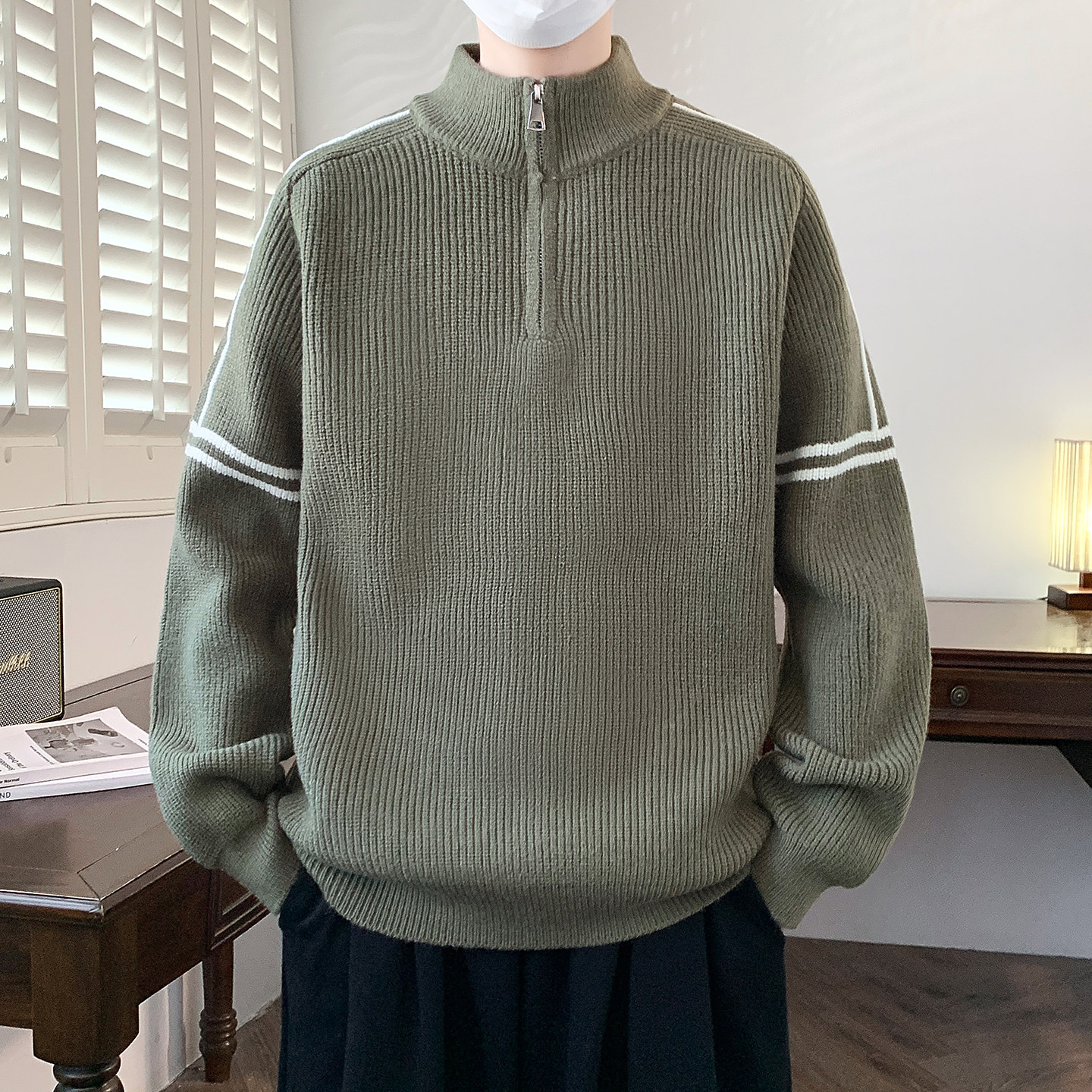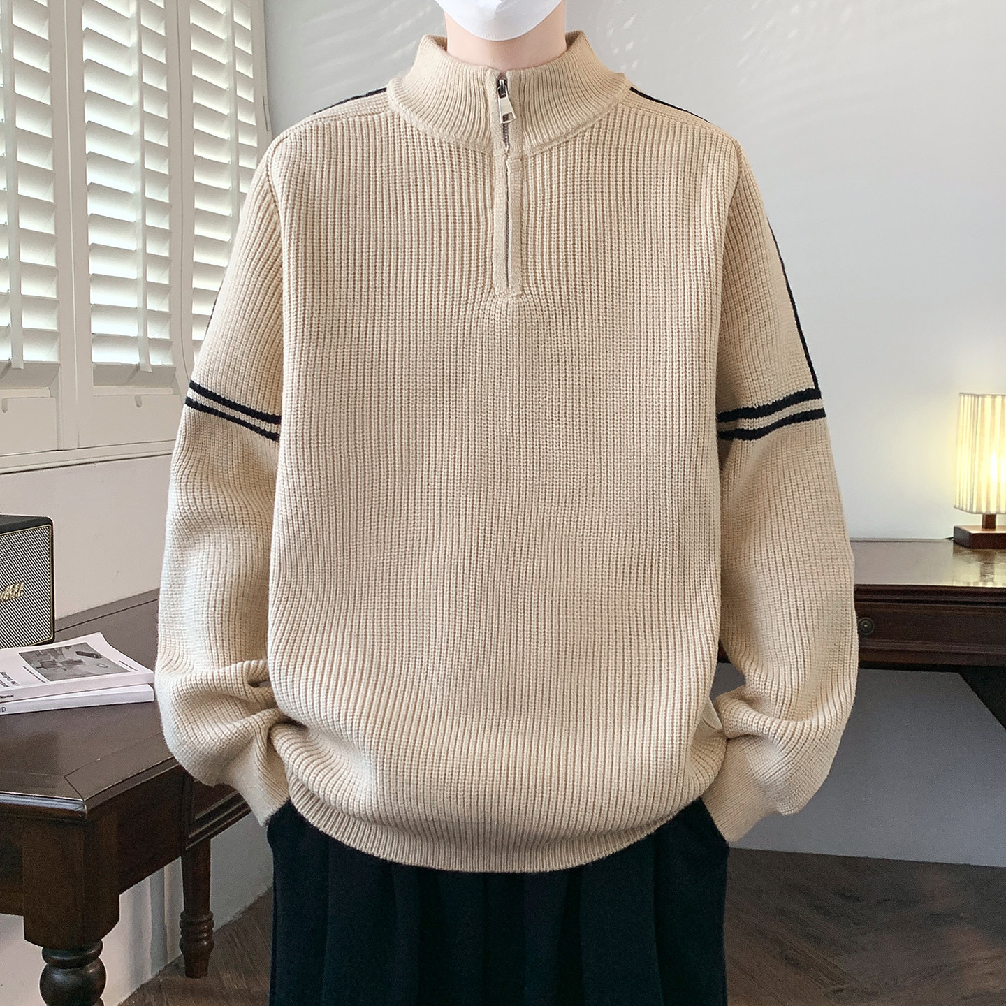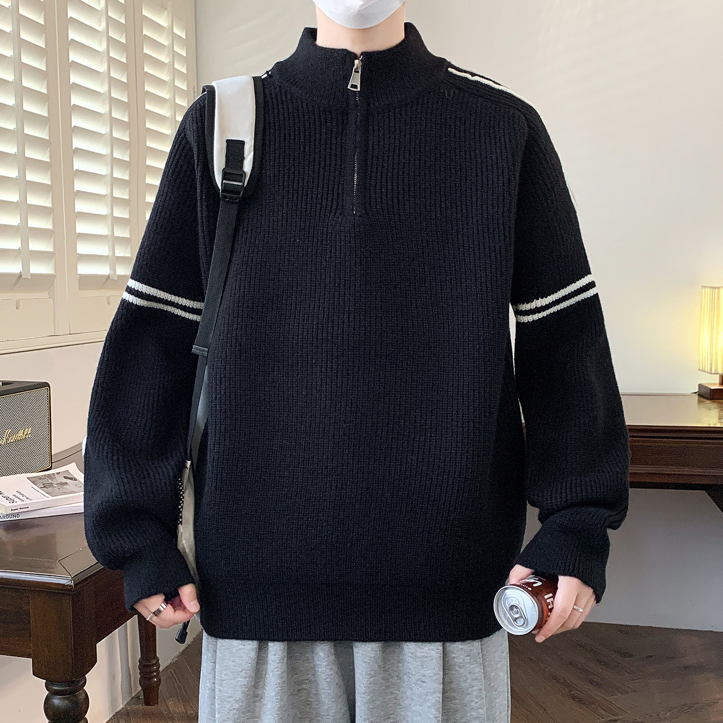 青少年半拉链高领毛衣男款冬季痞帅风针织衫初中高中男生内搭冬装