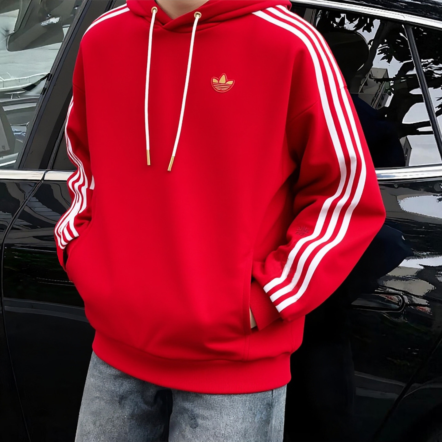 阿迪达斯三叶草卫衣男冬季新款宽松红色套头衫运动服美式纯棉上衣