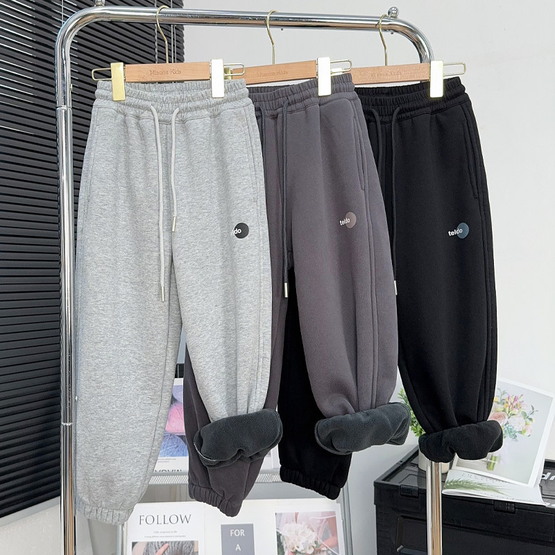 品牌童装男童加绒裤子冬款中大童休闲裤儿童一体绒卫裤男孩运动裤