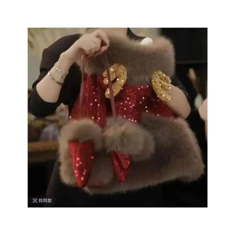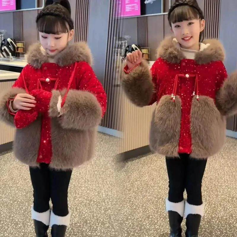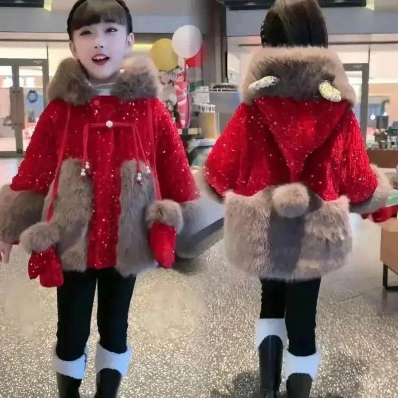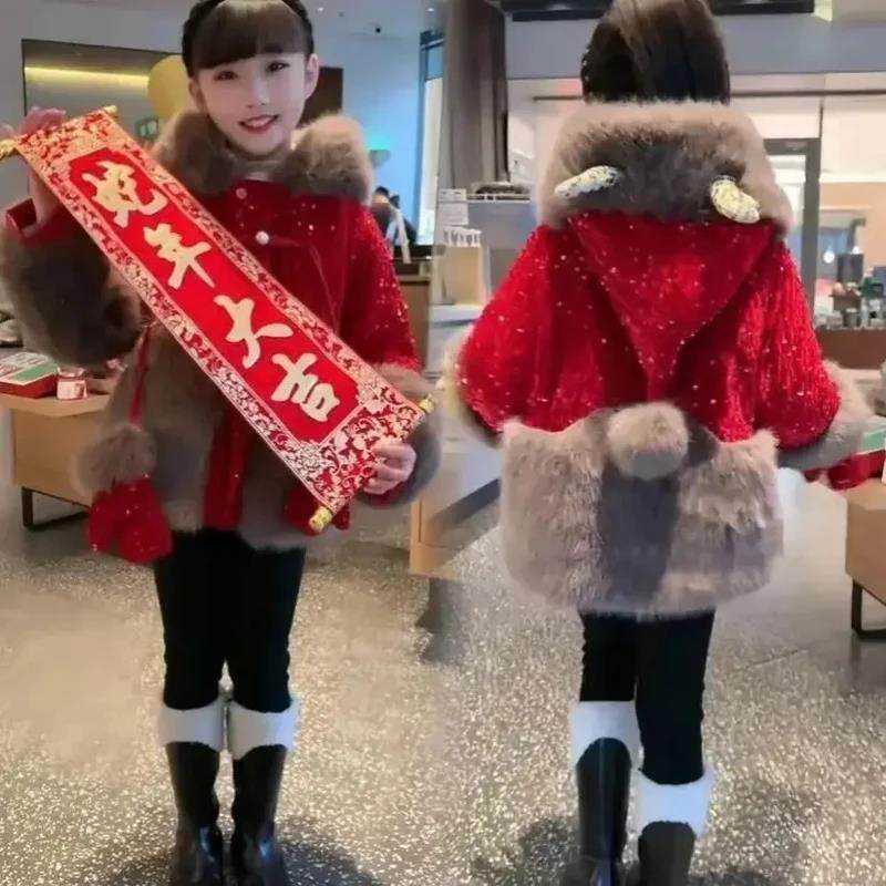 胜源严选女童冬装加绒外套冬季儿童洋气I拜S年服加厚鹿角亮片外套