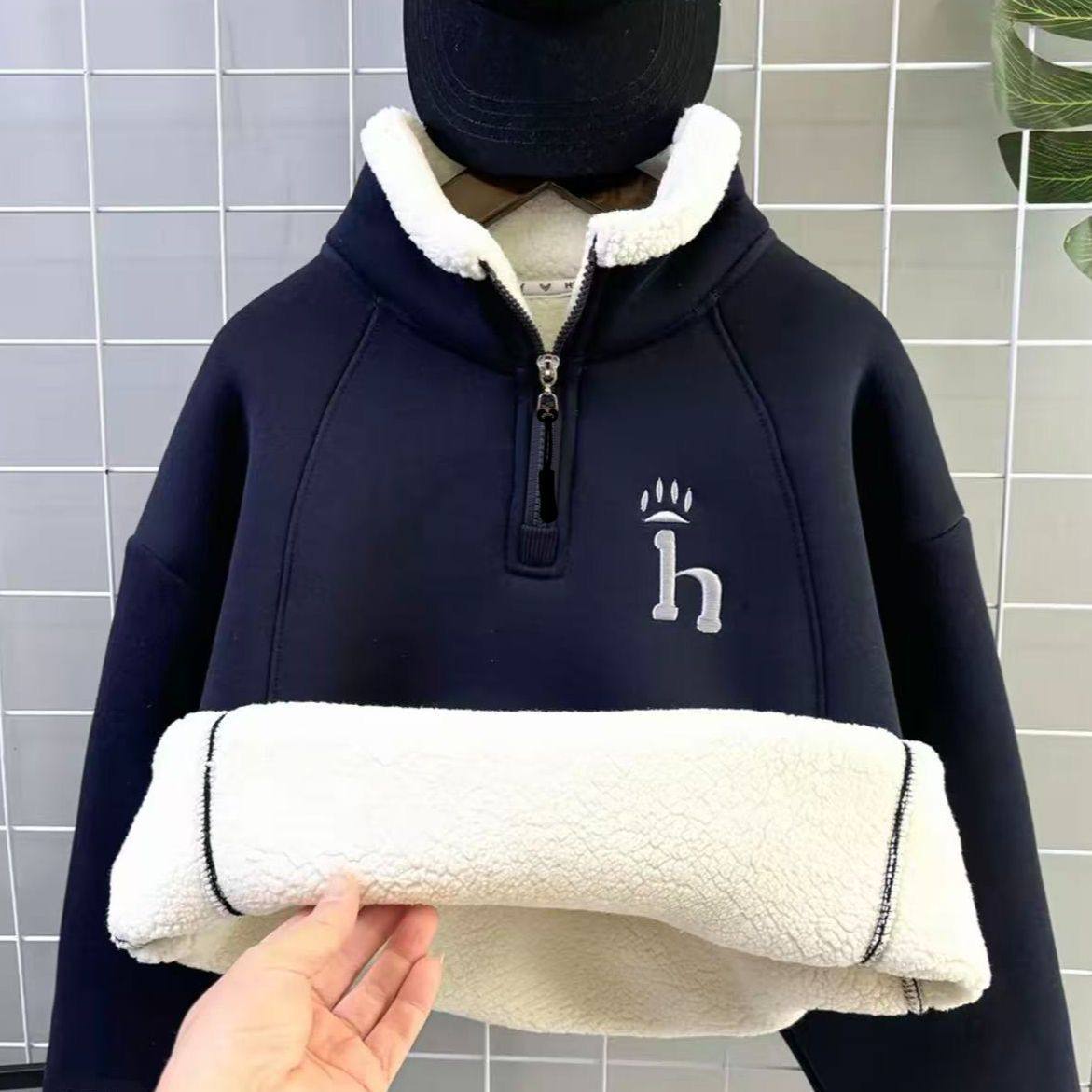 儿童冬季半拉链加绒羊羔绒卫衣男女童加厚保暖衣中大童加厚打底衫