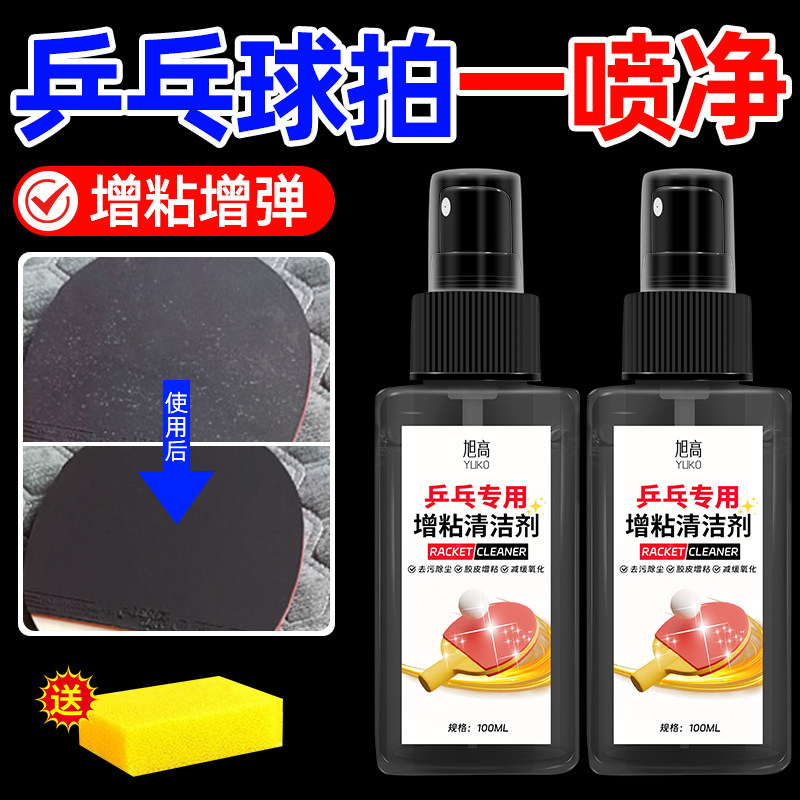 乒乓球拍清洁剂增粘护理清洗剂海绵擦抗氧化胶皮增粘喷雾清洁液%