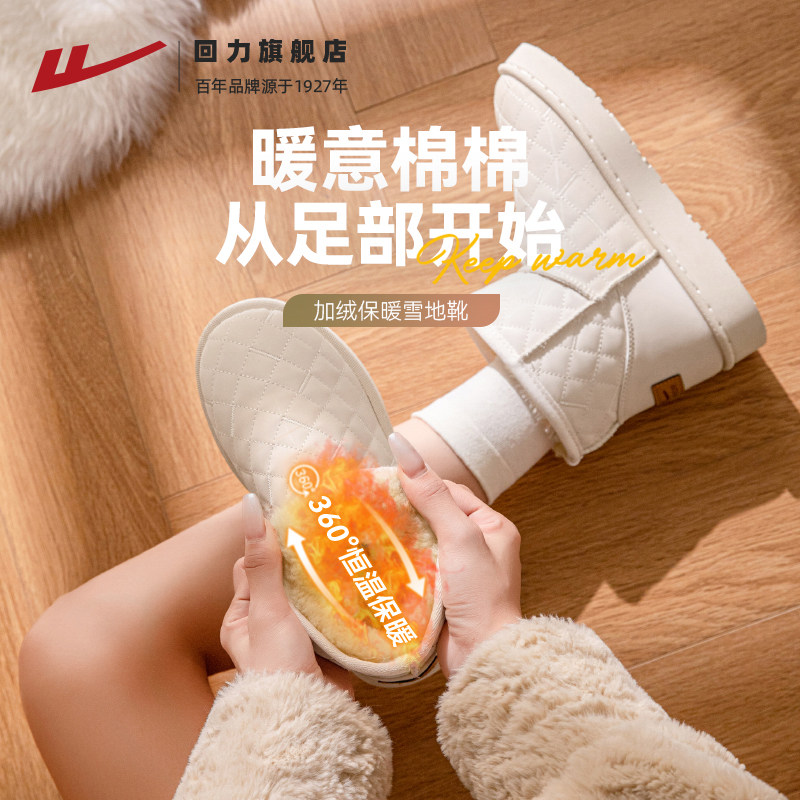 回力加绒加厚雪地靴2026冬季女鞋新款短靴子女士厚底保暖东北棉鞋