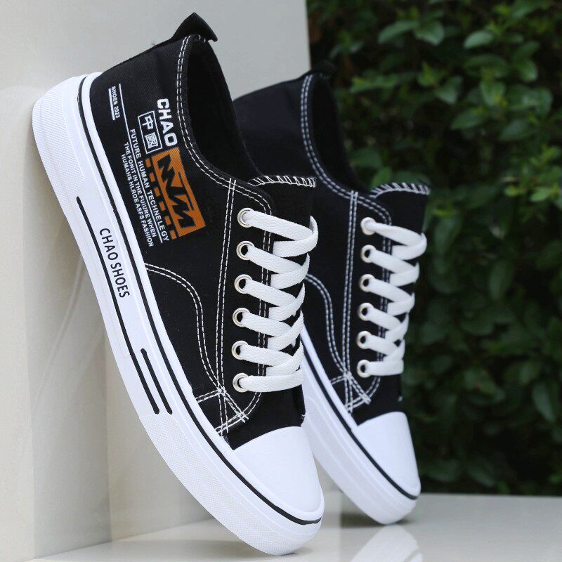 帆布鞋男鞋秋季透气薄款学生运动休闲平底板鞋男黑色布鞋防臭潮鞋