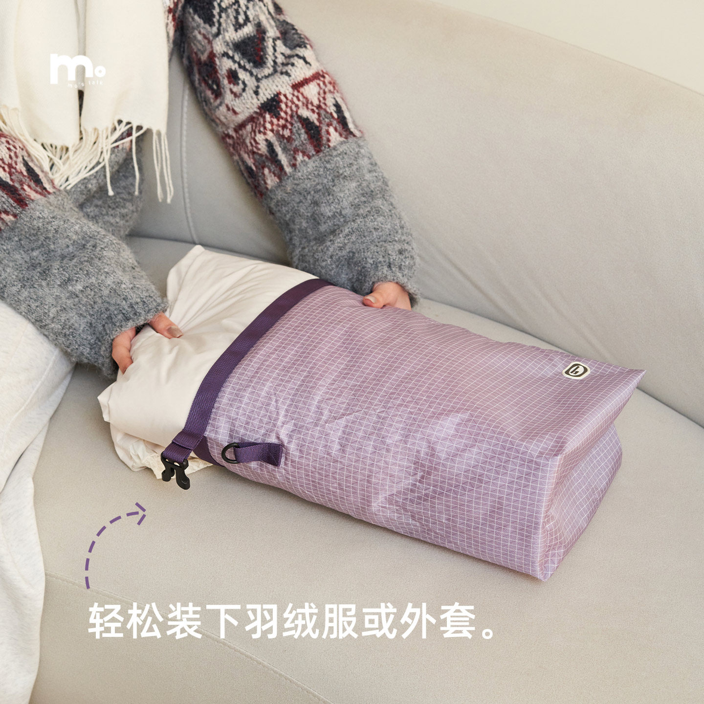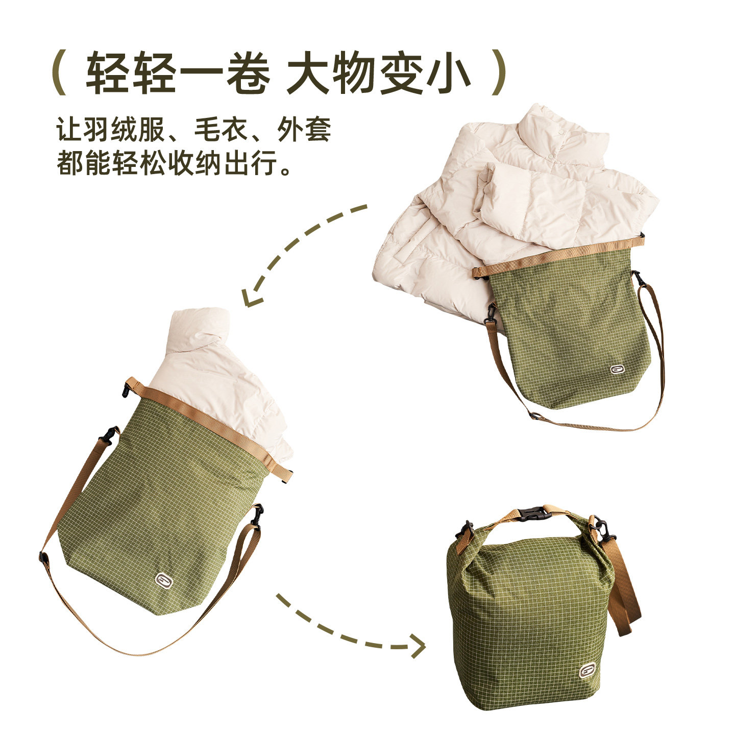 莫语 便携式羽绒服收纳袋随行压缩卷卷包出行运动小背包单肩包