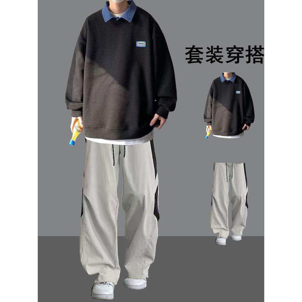 青少年帅气时髦卫衣套装男秋装重磅痞帅搭配一套潮流学生衣服男装