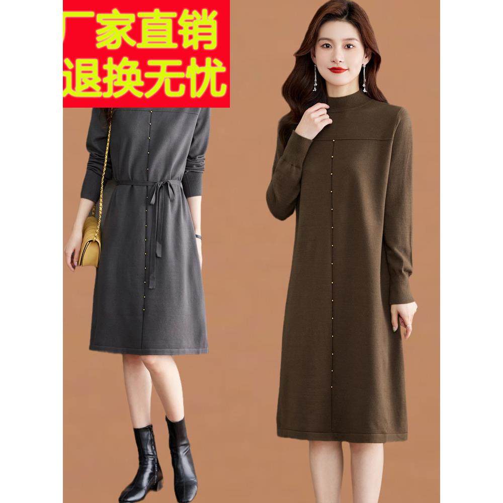 高级感小个子针织羊毛连衣裙女秋冬季新款中长款打底配大衣毛衣裙