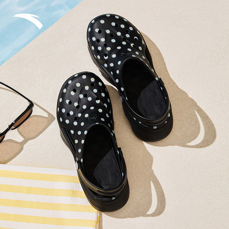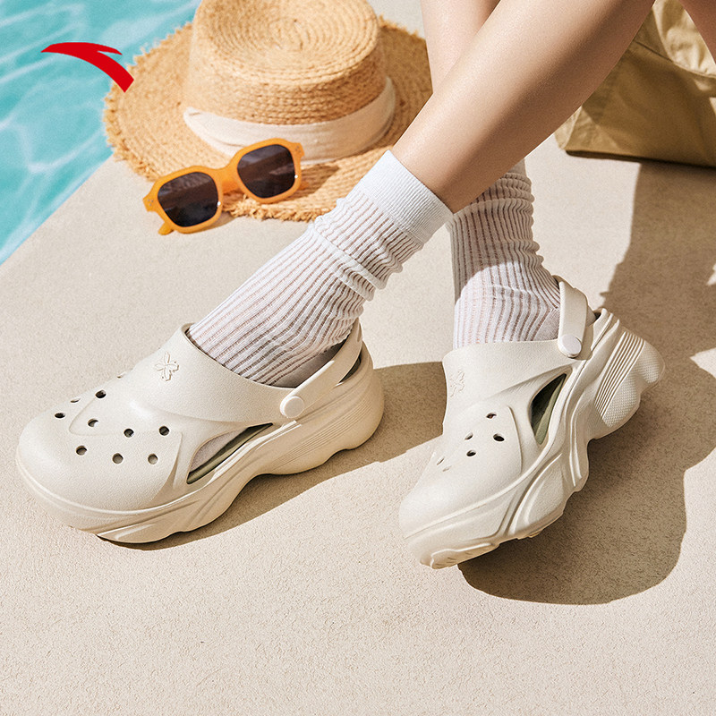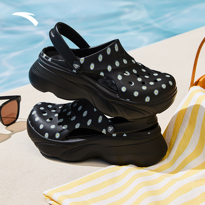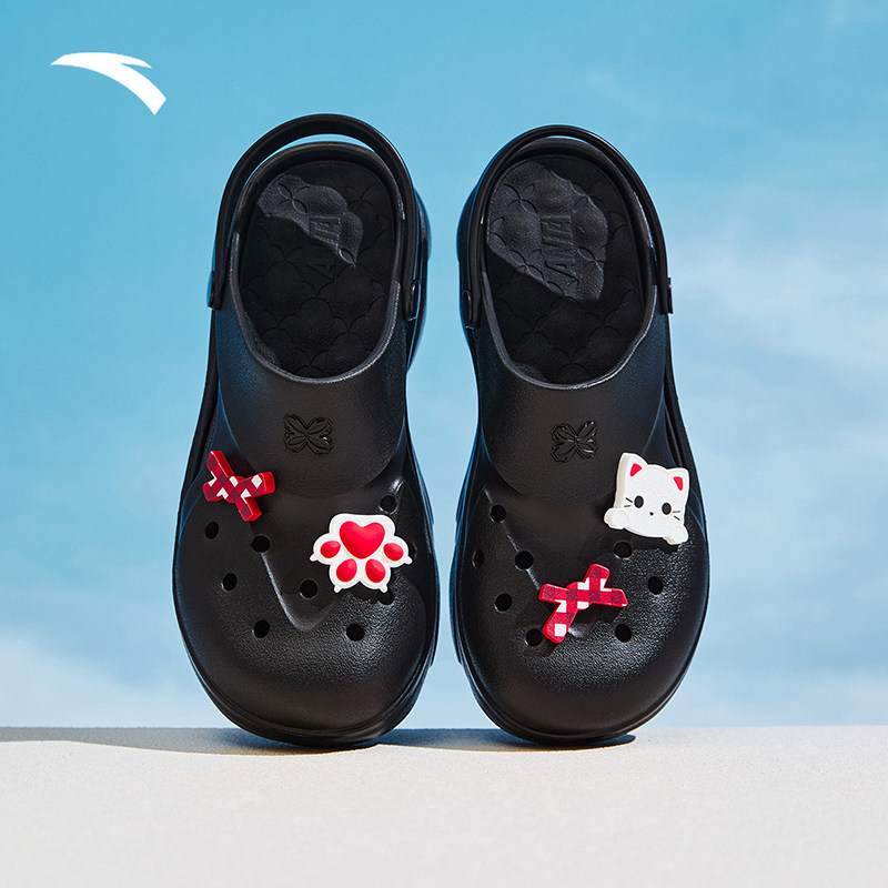 安踏萌爪女鞋黑色洞洞鞋凉鞋透气女款2026夏季新款厚底增高运动鞋