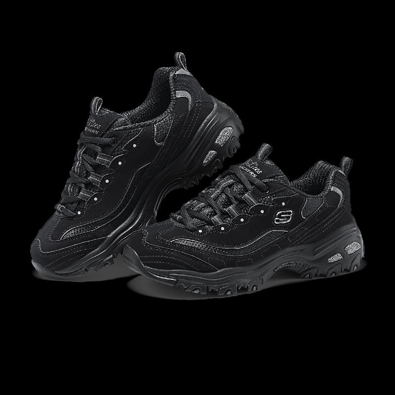 斯凯奇纯黑色熊猫鞋女款老爹鞋厚底休闲运动鞋夏季新款官方旗舰