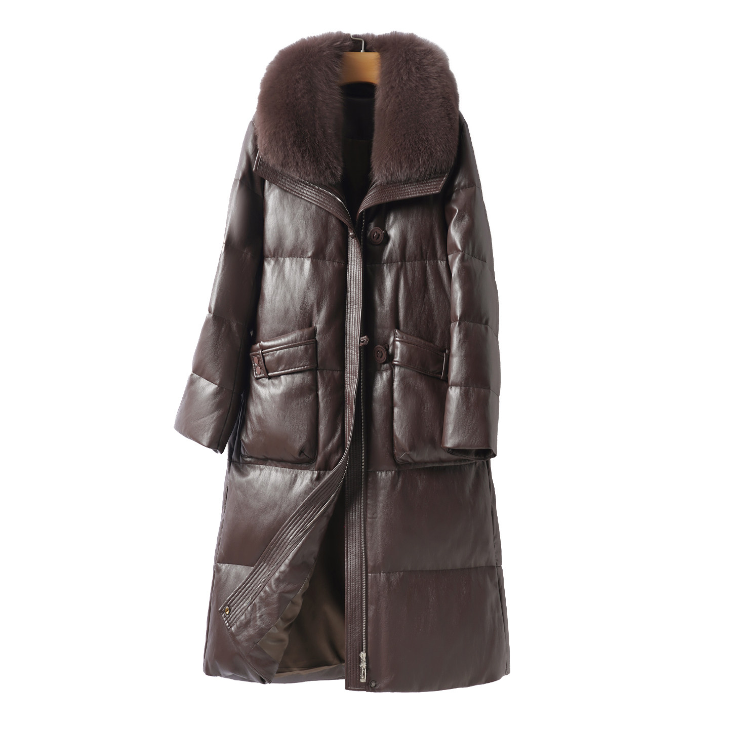 绵羊皮羽绒服女士中长款狐狸毛领90白鸭绒外套冬季加厚海宁真皮衣