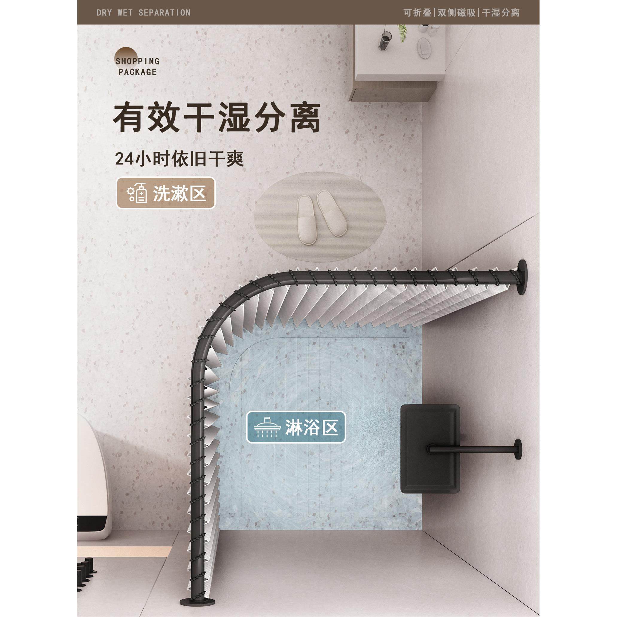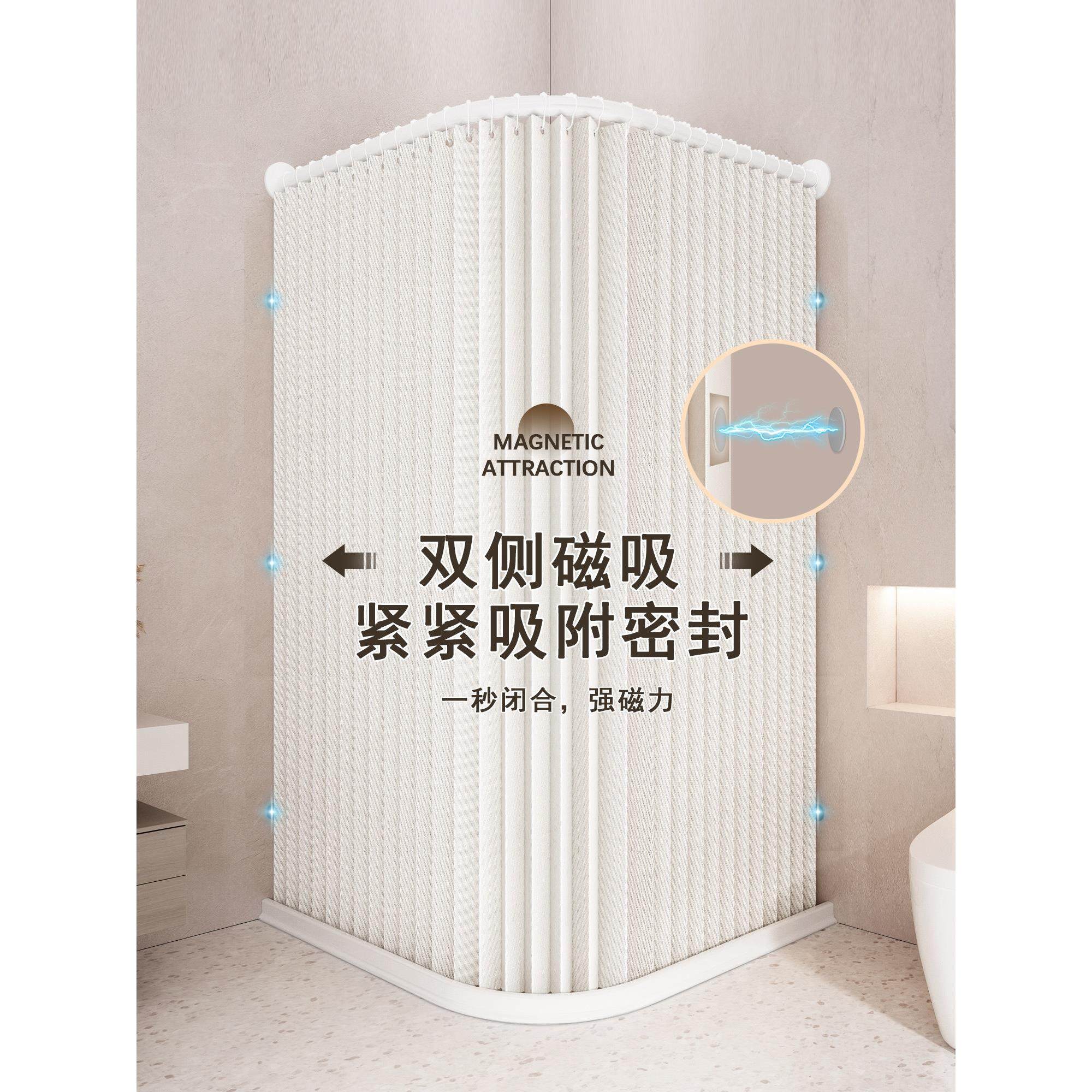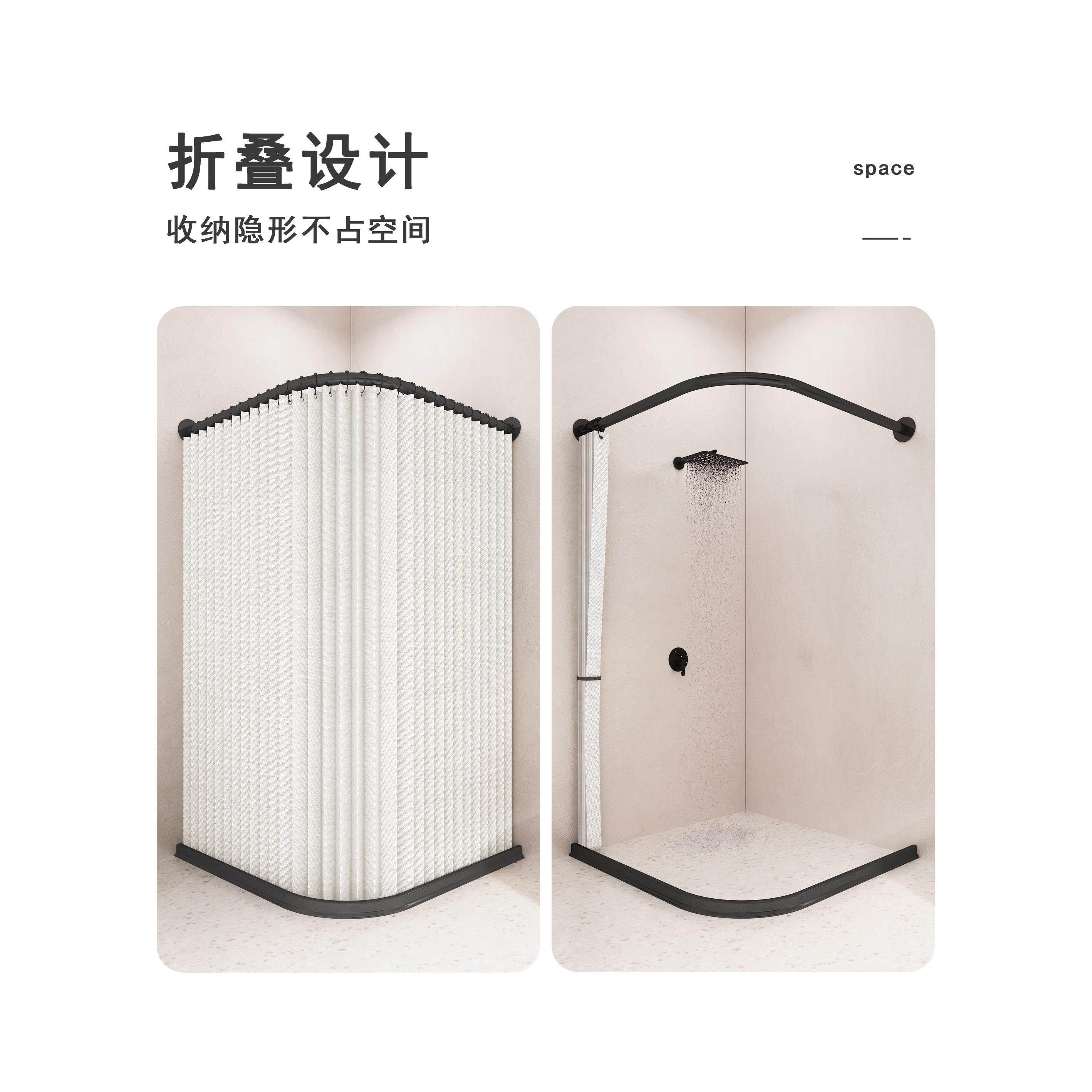 隐形浴帘杆弧形隔断帘防水高档卫生间浴室干湿分离折叠小户型悬空
