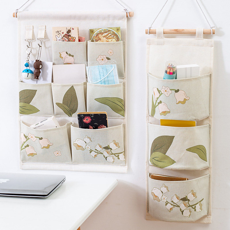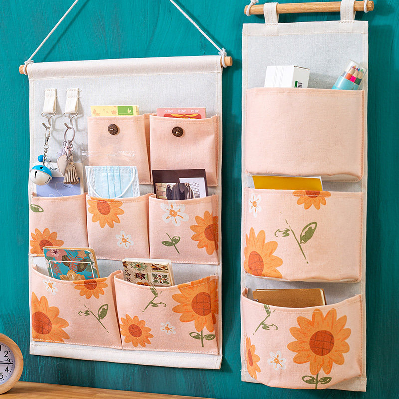 艺术花卉收纳挂袋布艺墙挂式衣柜门后置物架卫生间床头墙面壁挂篮