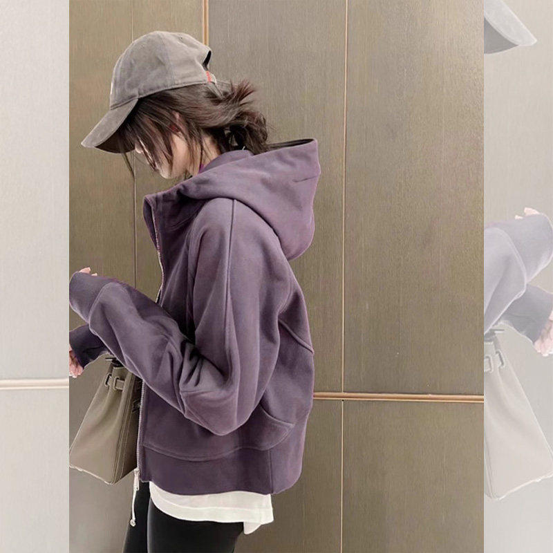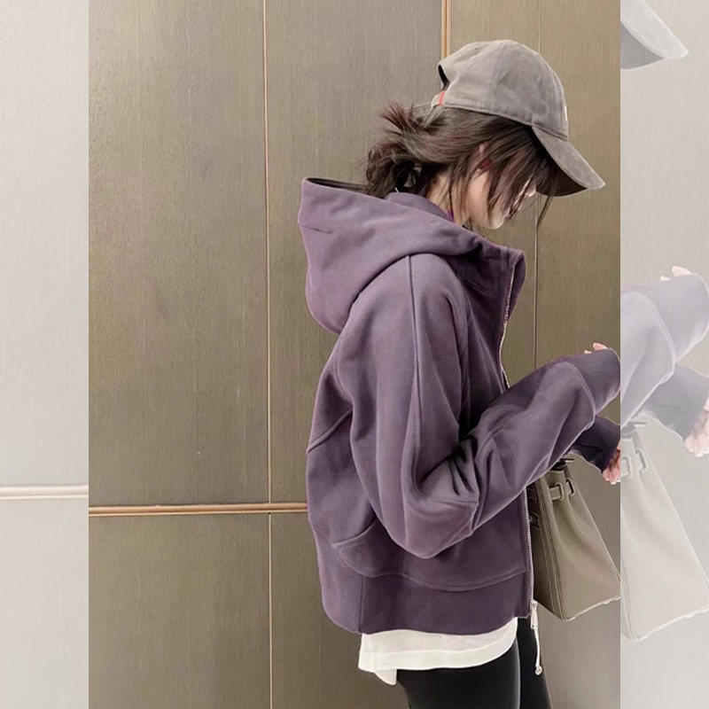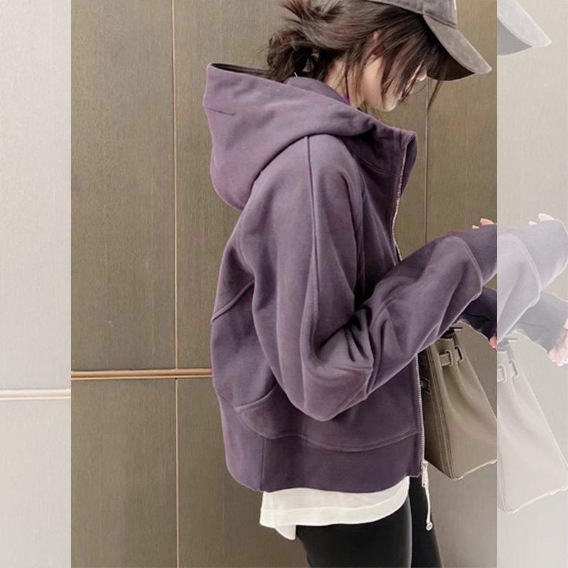温柔休闲~紫色宽松连帽卫衣女款拉链开衫2026新款慵懒风宽松外套