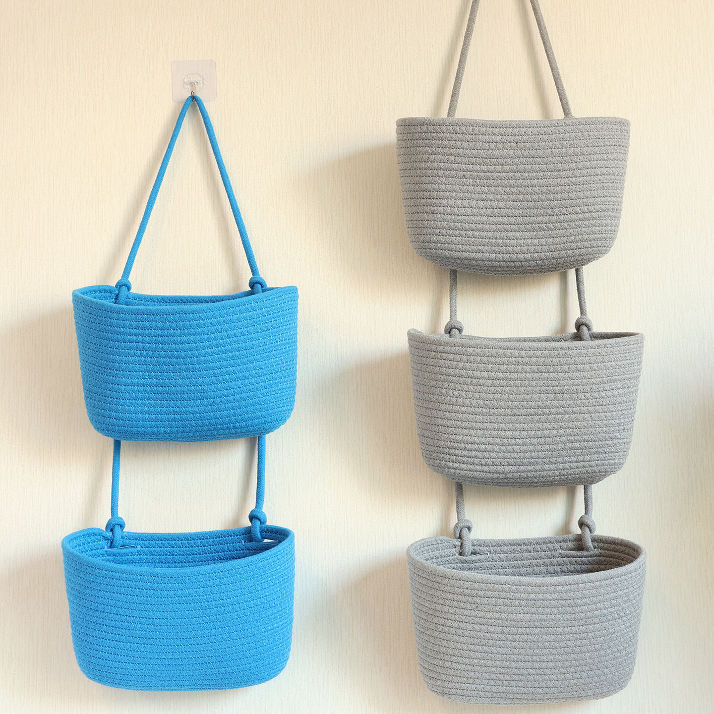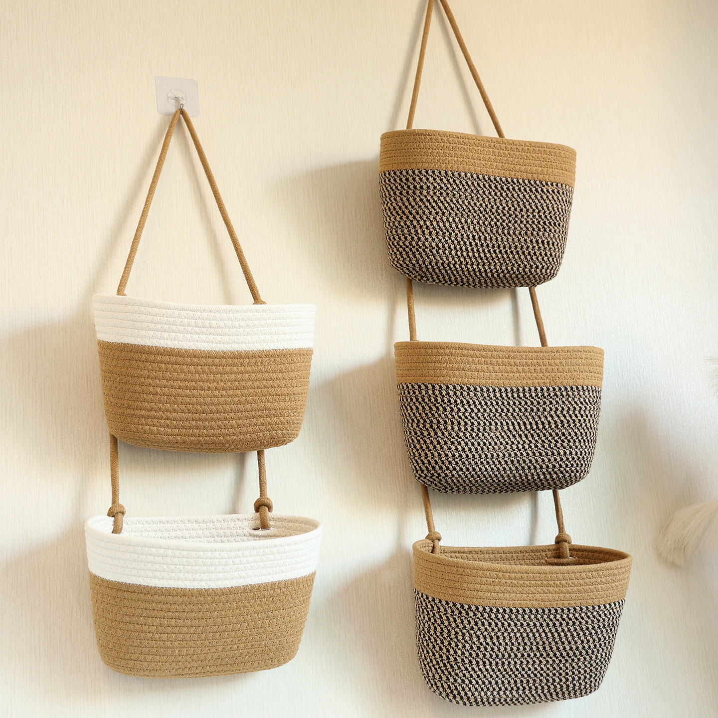 棉绳挂袋墙挂式收纳袋入户玄关收纳篮多层环保杂物收纳壁挂收纳筐