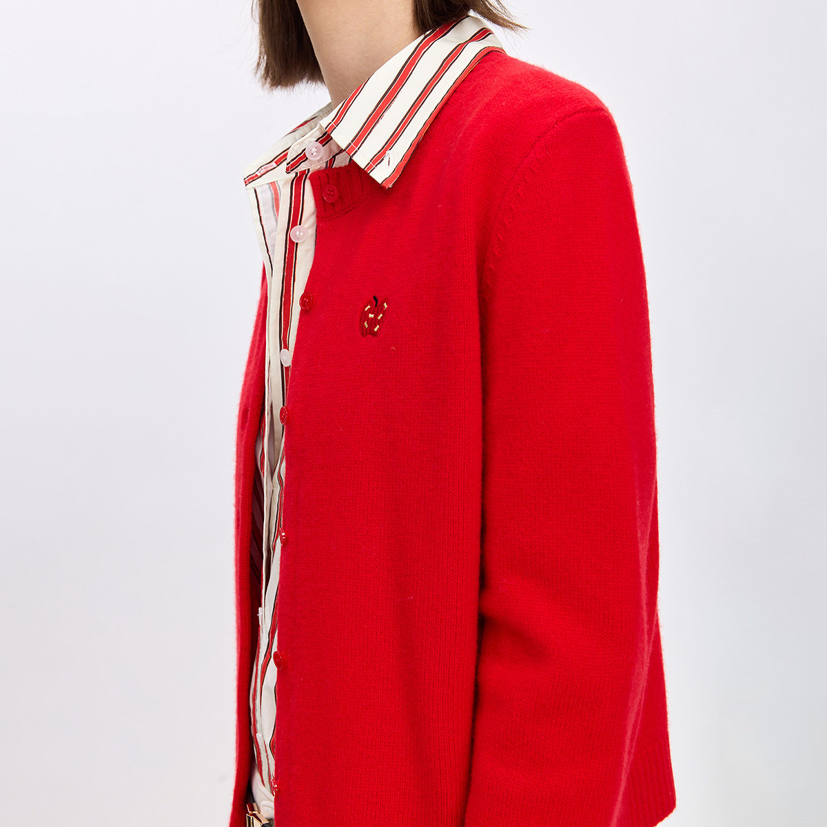 LILY2026春新款女装圣诞新年上衣外套平安果刺绣羊毛毛衣针织开衫