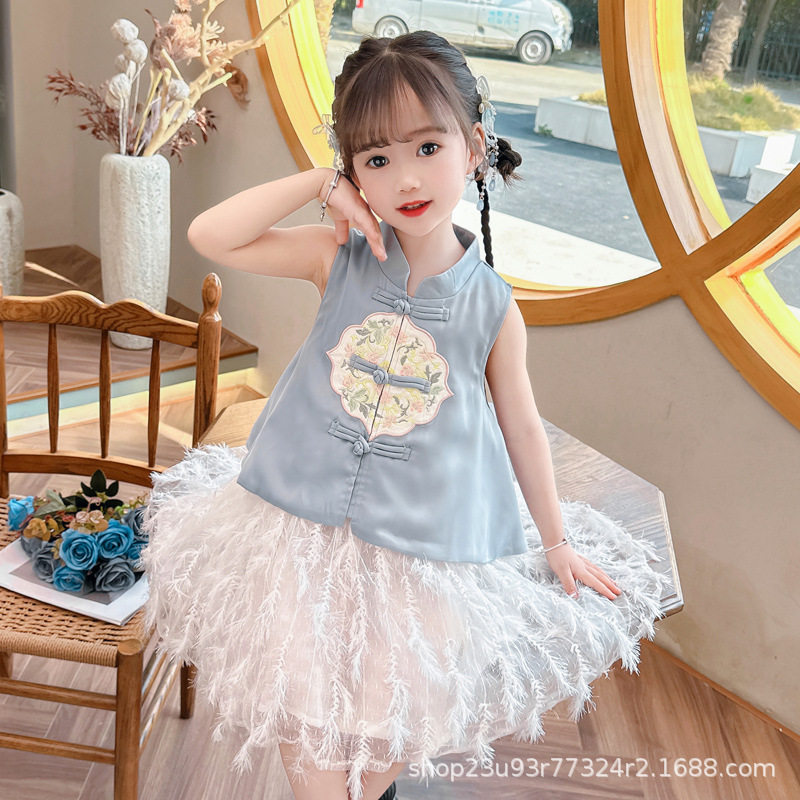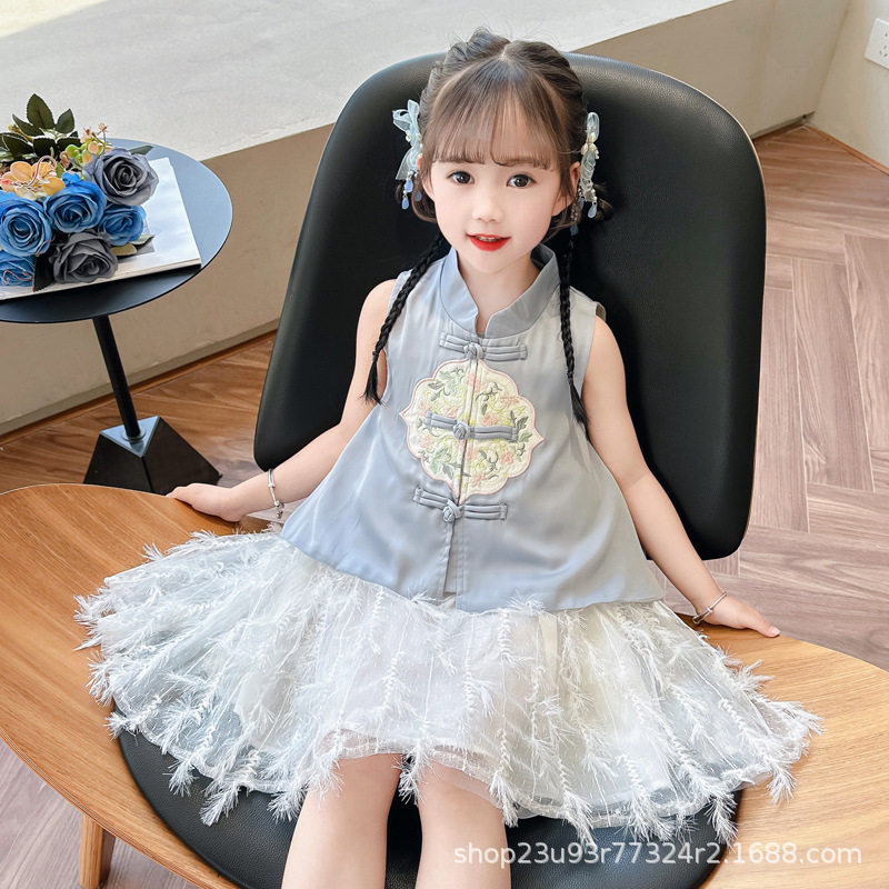 女童夏装新中式吊带公主连衣裙套装新款洋气儿童复古国风两件套潮