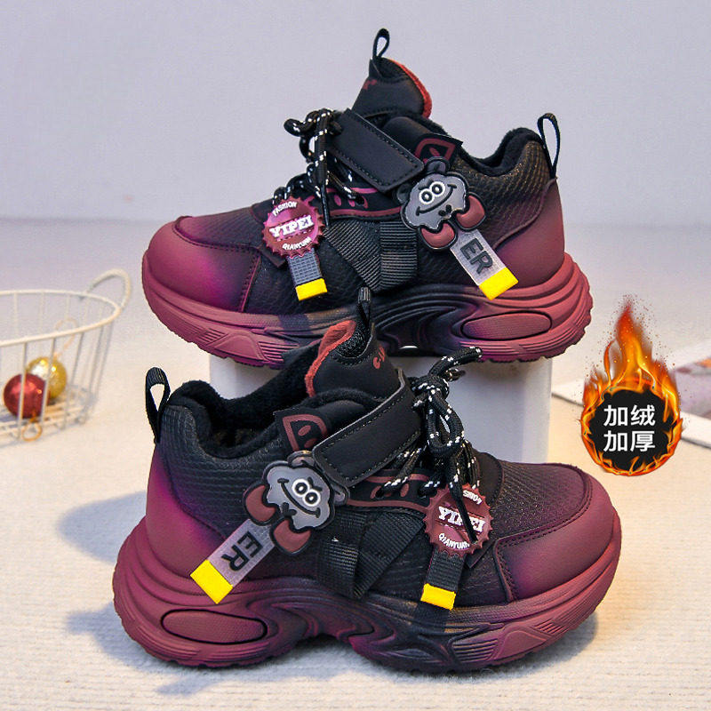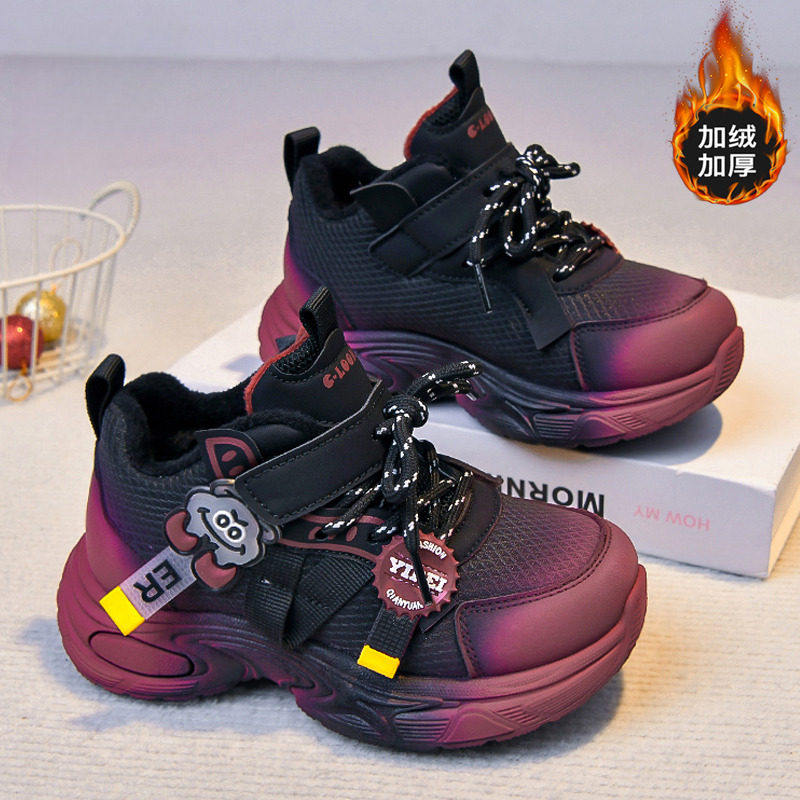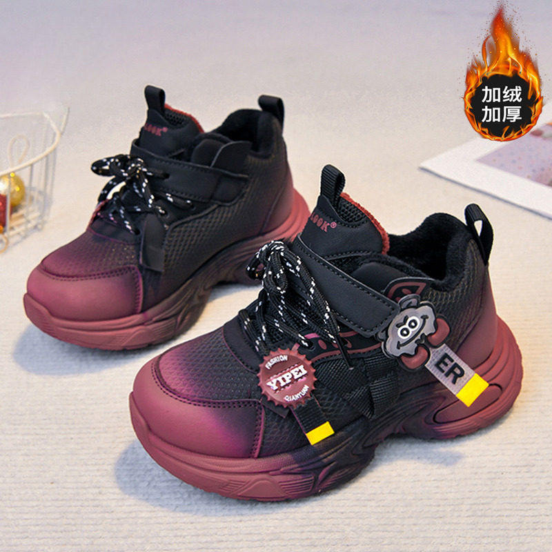 官网C&K女童鞋子红色运动鞋冬季新款保暖儿童棉鞋女孩加绒老爹鞋