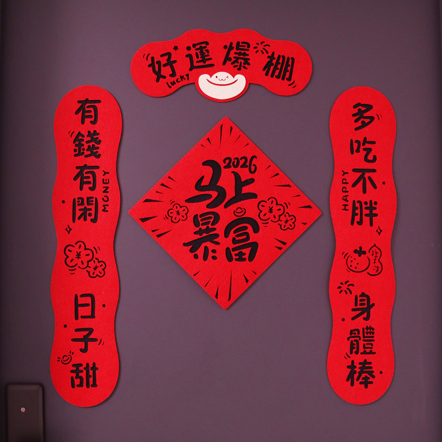 2026马年新款磁吸小对联创意哈哈哈大门春联立体搞笑挥春门贴装饰