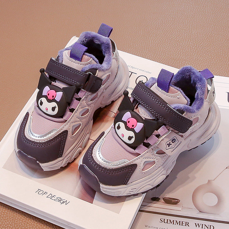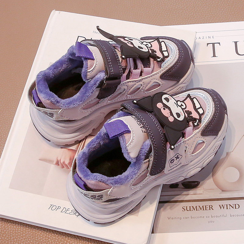 女童加绒加厚棉鞋儿童秋冬时尚库洛米休闲运动鞋中大童保暖二棉鞋