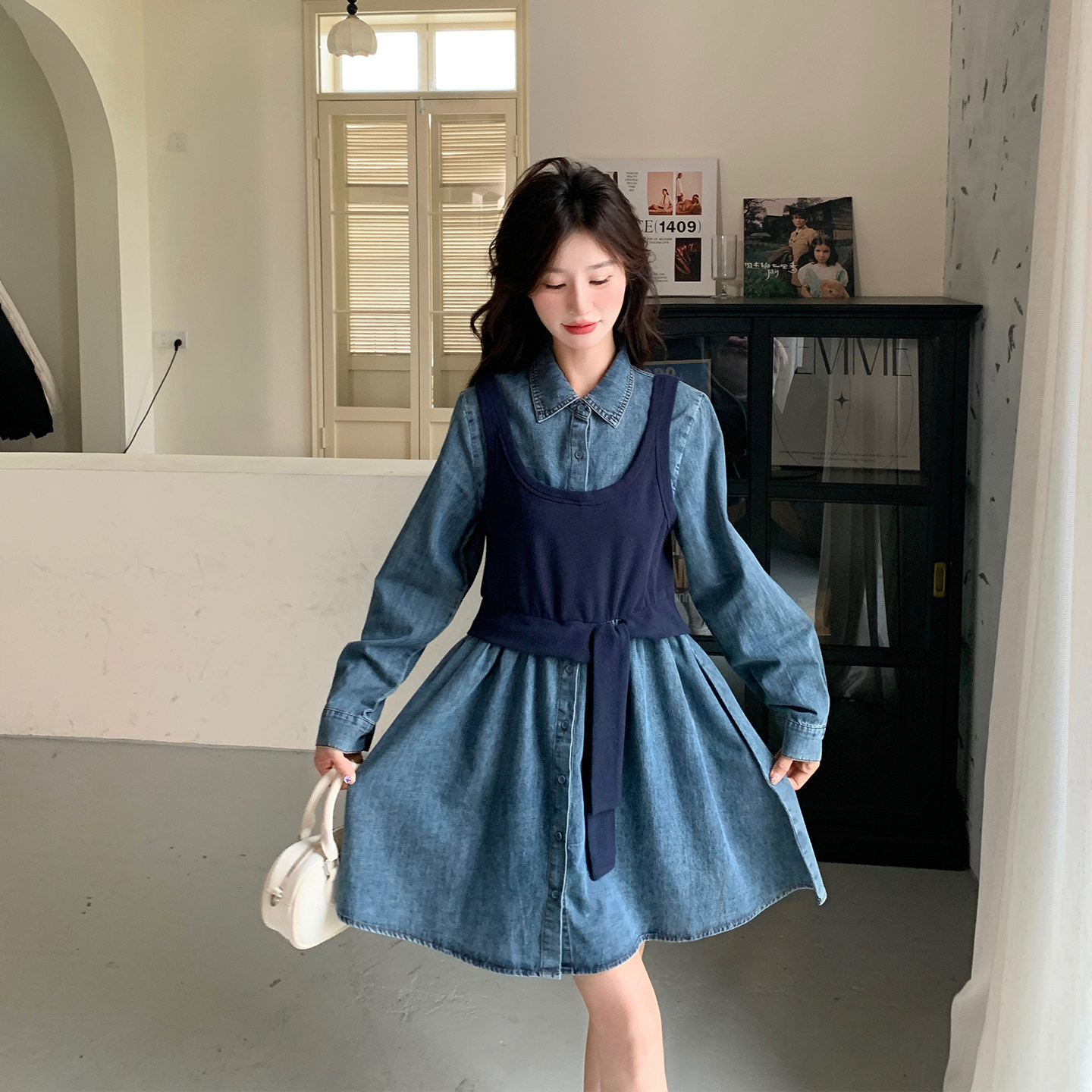 假两件背心牛仔连衣裙女春季2026新款中长款小个子学院风流行爆款