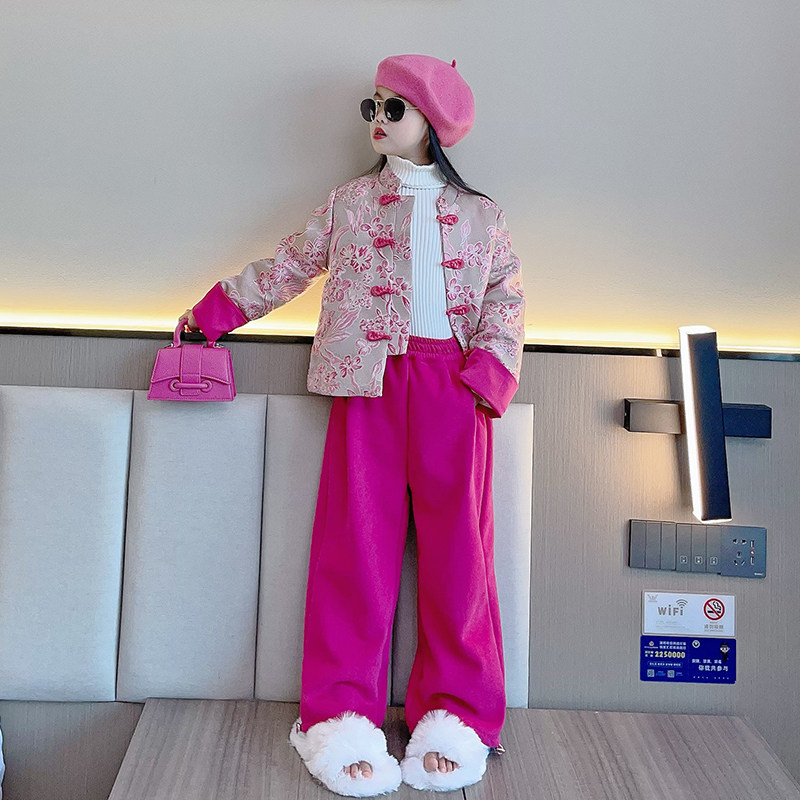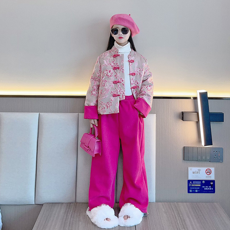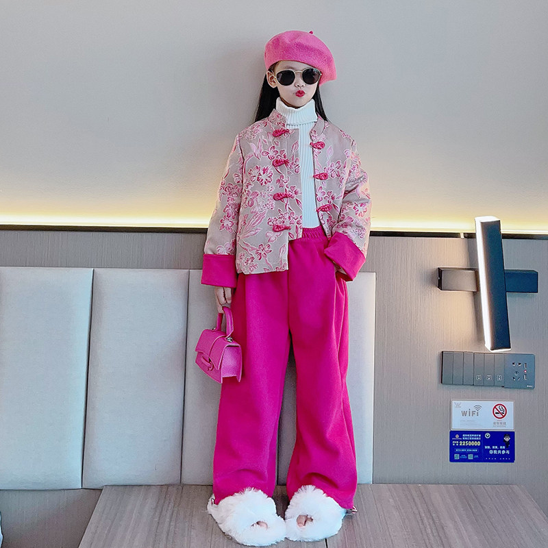 女童套装秋冬装2026新款时髦洋气中式唐装年服中大儿童冬季羽绒服