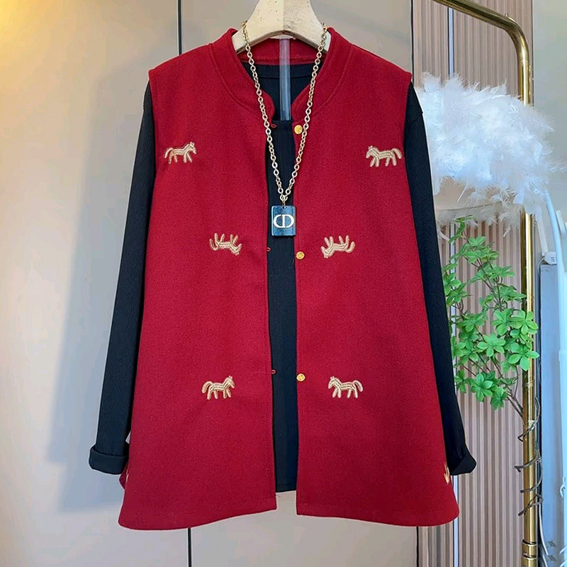 胖mm大码女装春季2026新款欧货时尚刺绣小马百搭显瘦毛呢马甲打底
