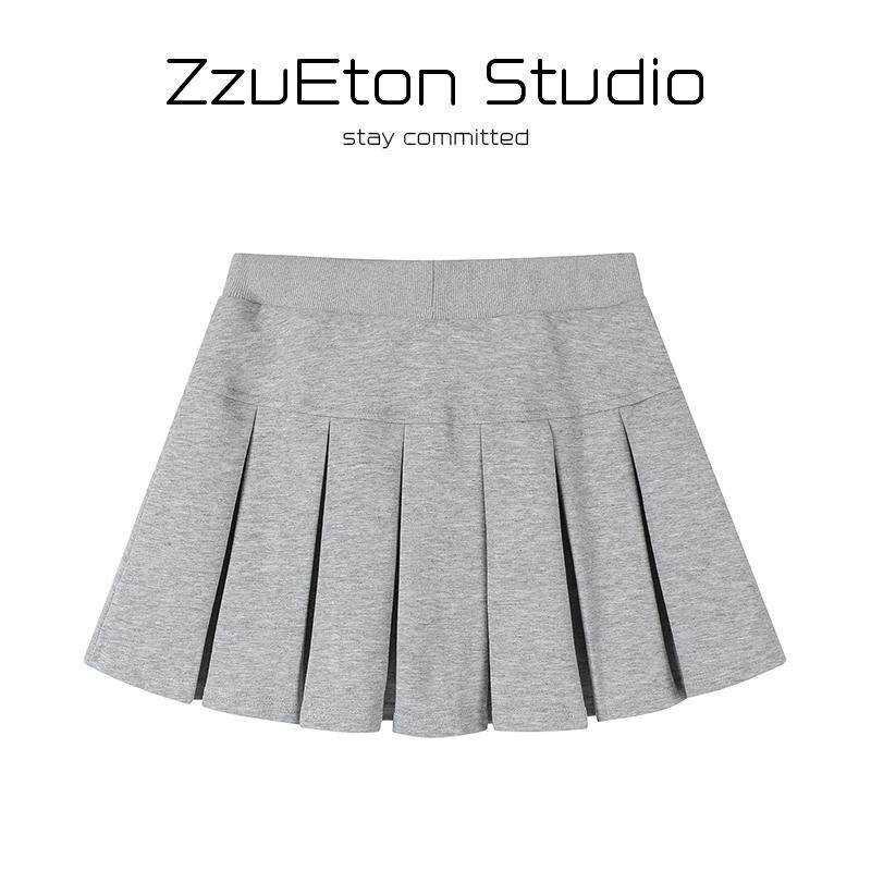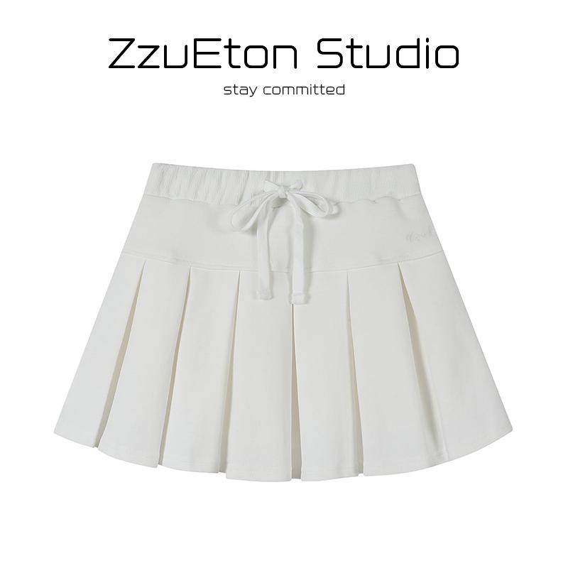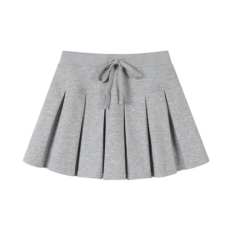 June黑色网球百褶半身裙女春夏2025新款学院风短款针织a字裙子
