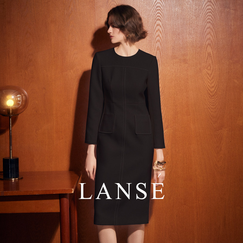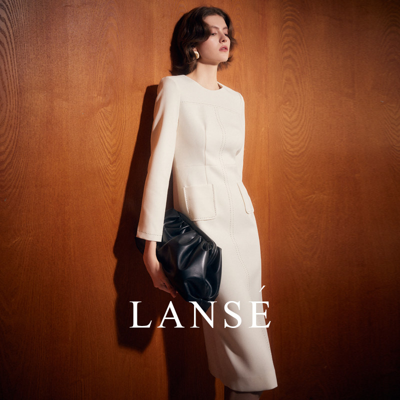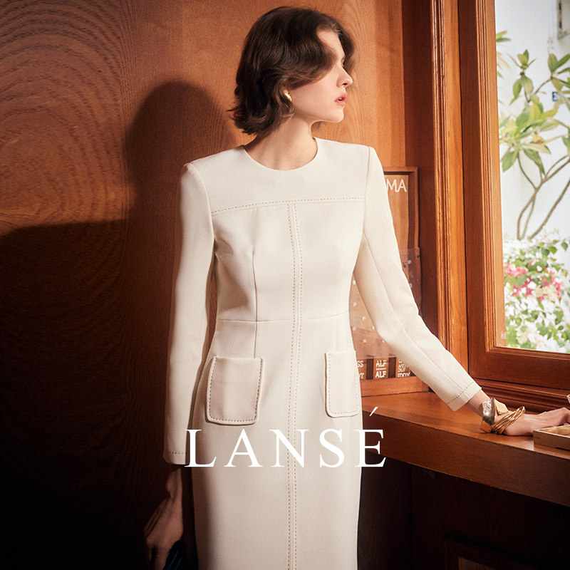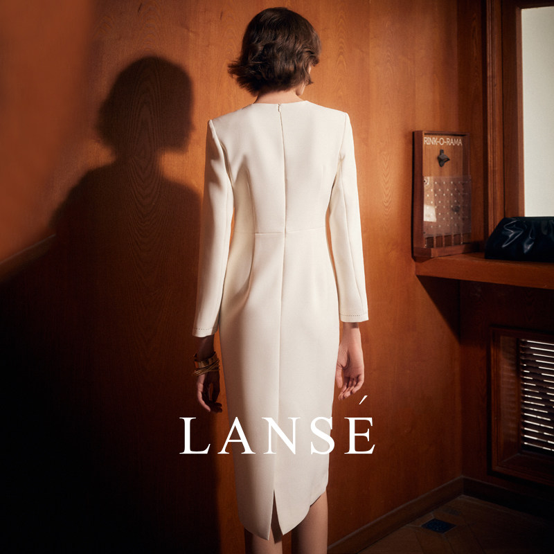 兰瑟白色通勤气质中长款连衣裙女装2024新款秋冬收腰显瘦长袖裙子