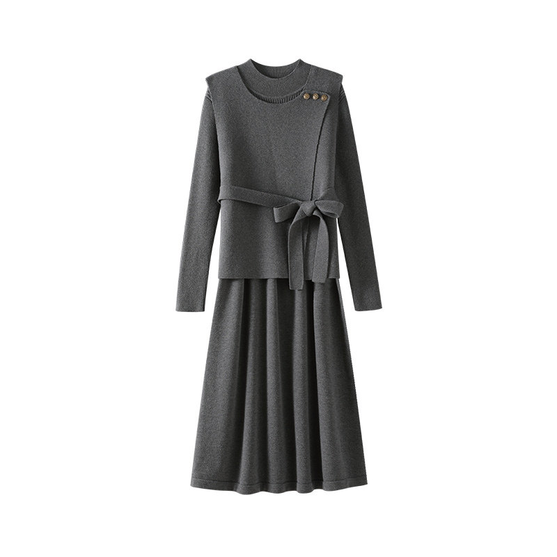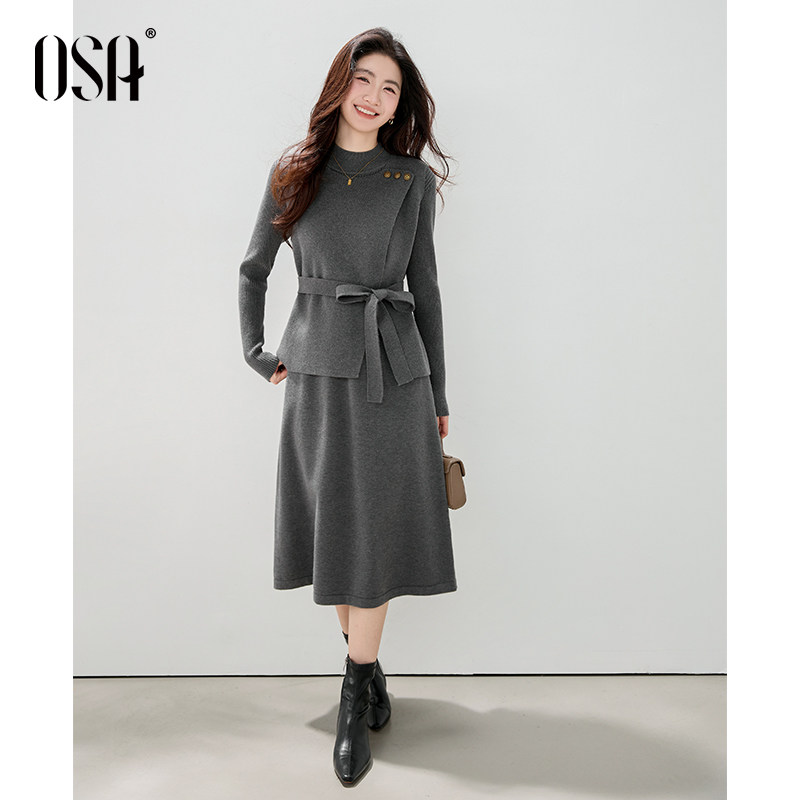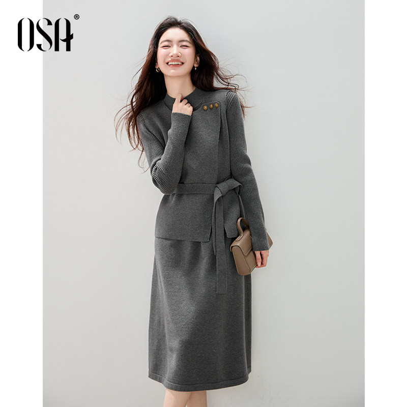 OSA欧莎高级感格雷系套装裙女冬季新款气质显瘦马甲+连衣裙两件套