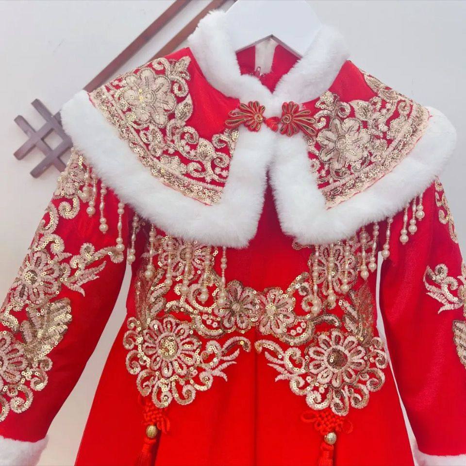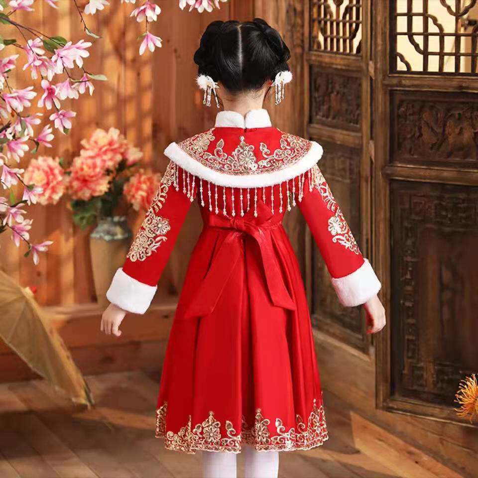 拜年服女童加绒加厚唐装公主裙冬季汉服儿童女宝宝过年旗袍连衣裙