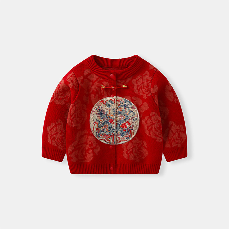 男童冬装拜冬套装宝宝毛衣周岁礼服婴儿红色喜庆新年过年衣服