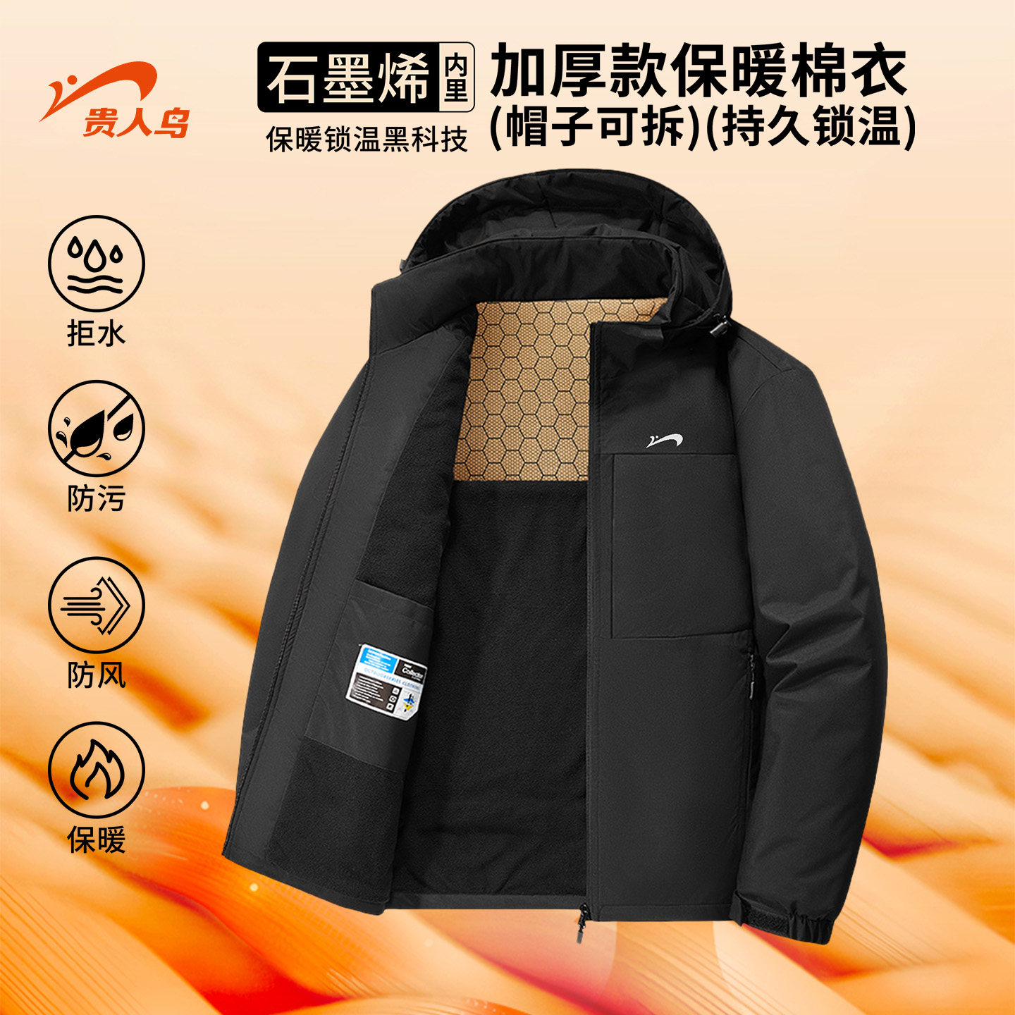 贵人鸟棉服男款冬季2025年中年爸爸冬装外套加绒棉衣夹克男士棉袄