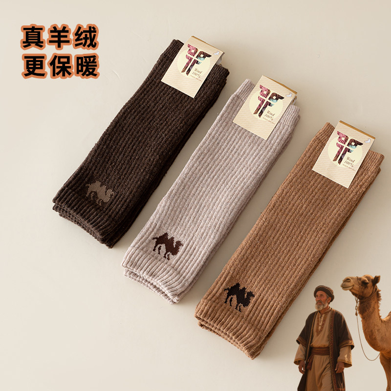 骆驼护膝膝盖自发热保暖老寒腿袜筒套筒男女羊绒中老年防风湿驼色