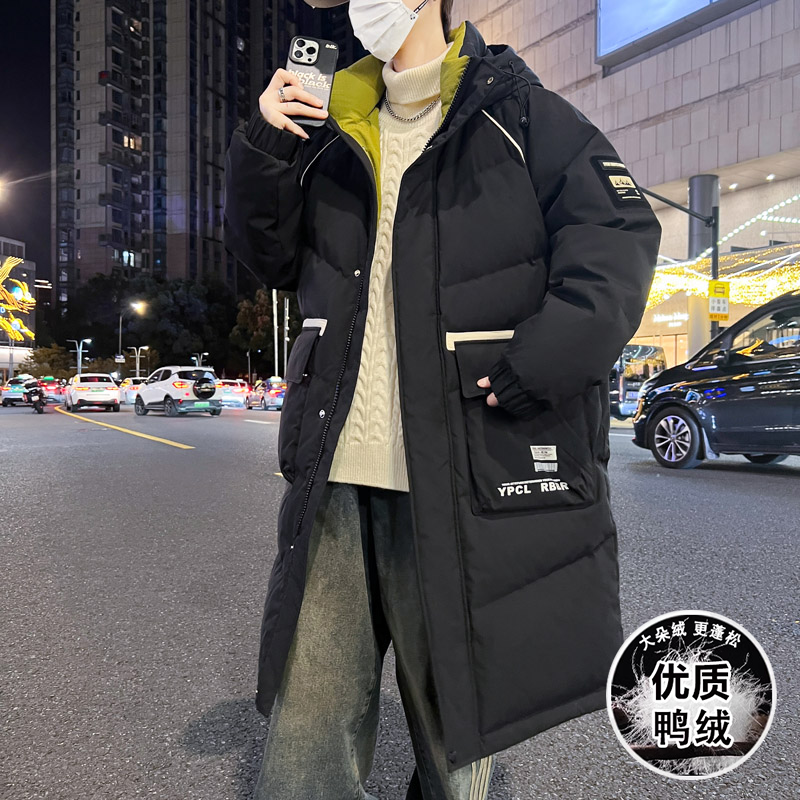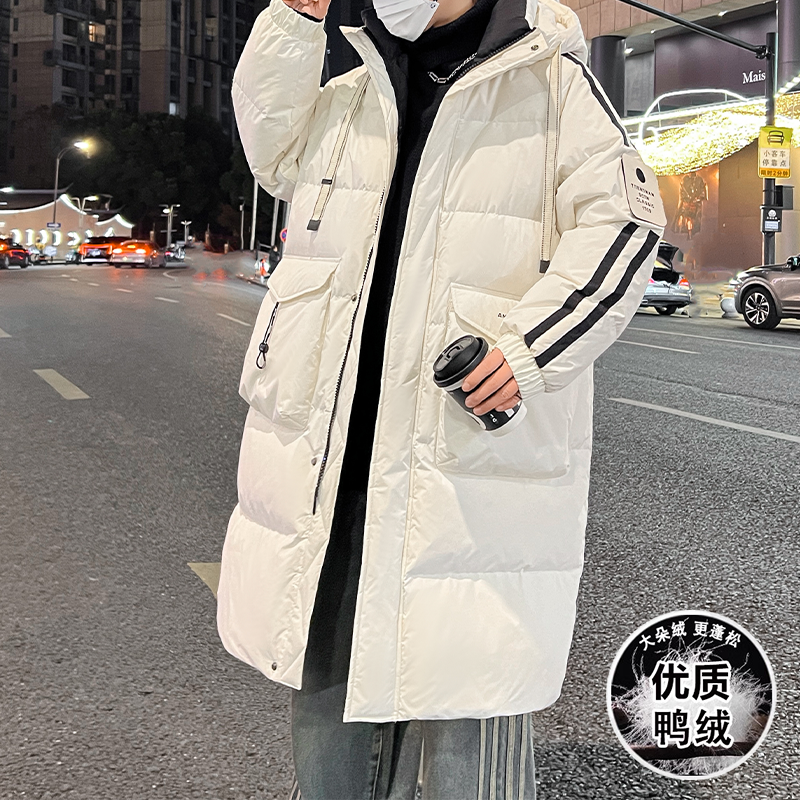 白鸭绒羽绒服外套男孩冬季中长新款初中学生青少年加厚大童男装士
