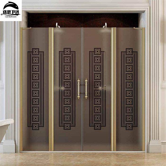 金色边框豪华欧式淋浴隔断屏风卫生间浴室工艺花纹淋浴房干湿分离