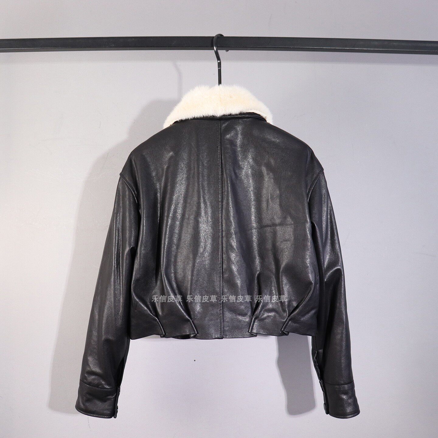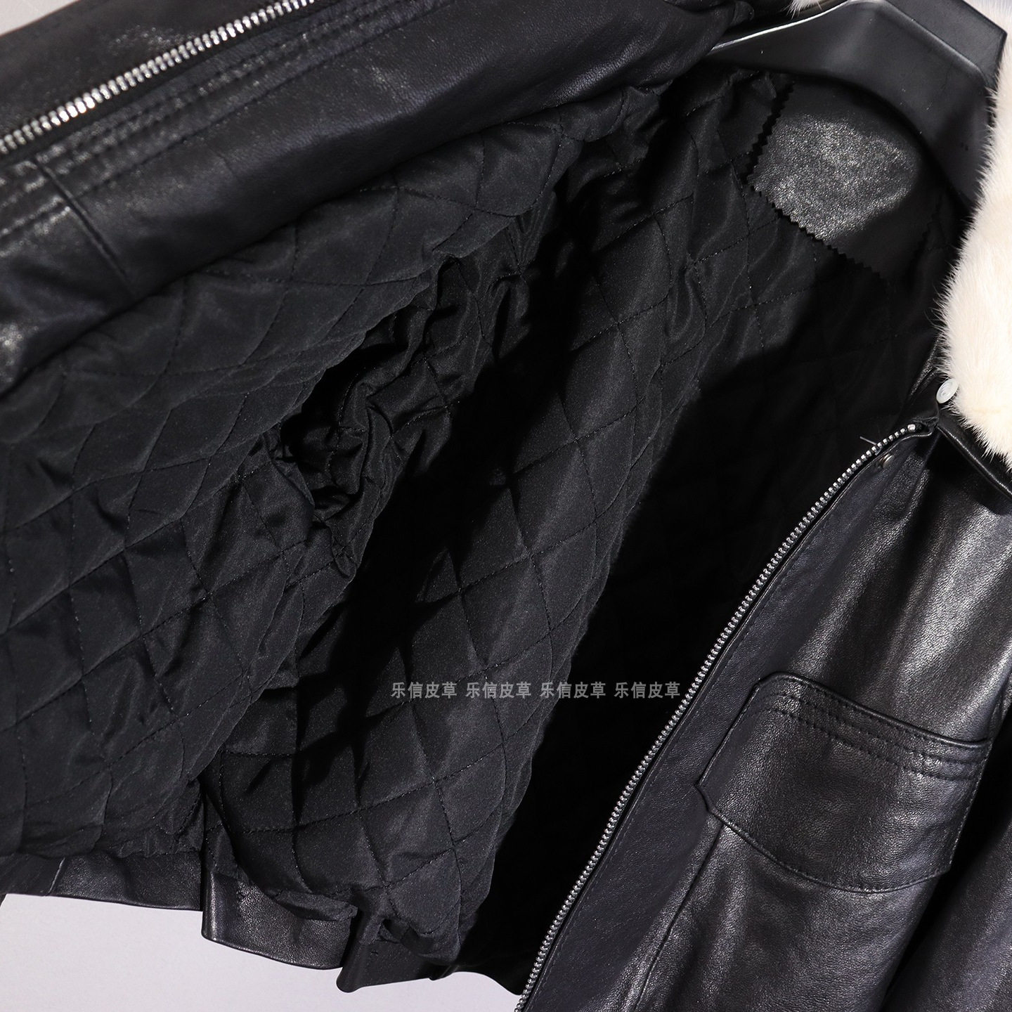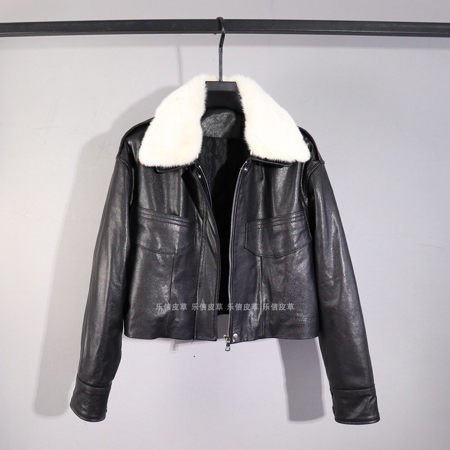 新款真皮加棉皮衣女绵羊皮时尚水貂毛领加厚皮夹克气质保暖外套