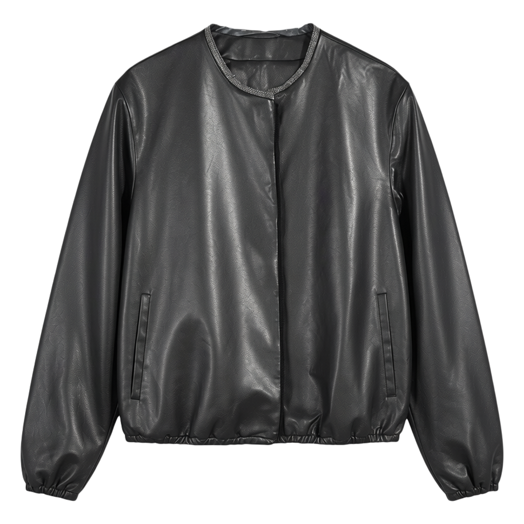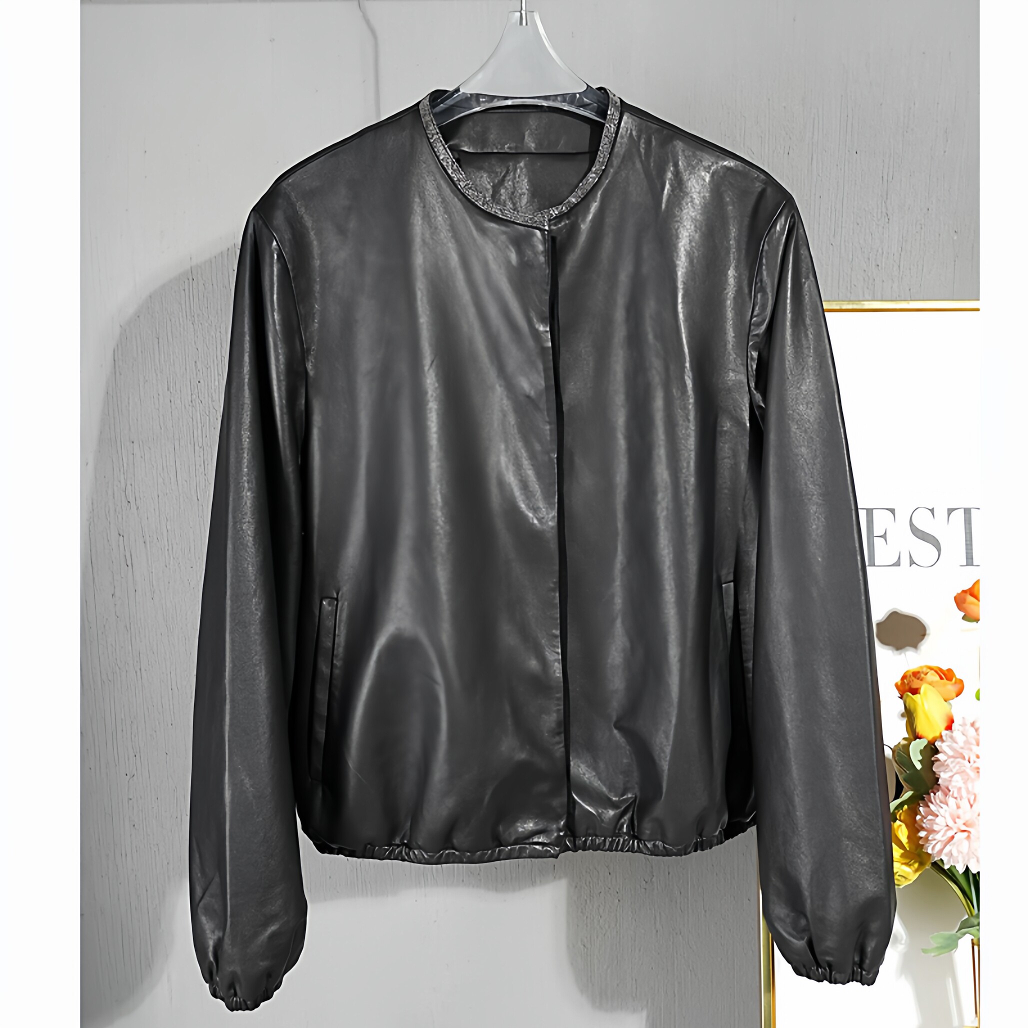 薄款植鞣绵羊皮皮衣外套女2025春秋宽松圆领通勤真皮皮夹克短款