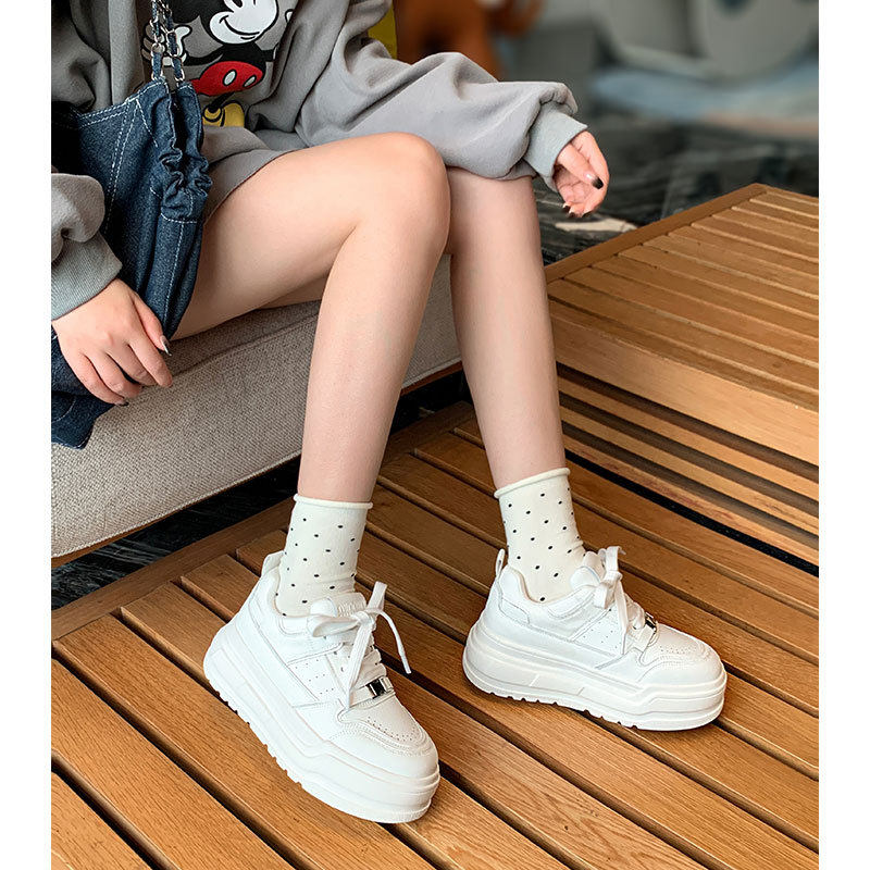 真皮厚底小白鞋女款2026春季新款6cm增高百搭板鞋防滑休闲运动鞋